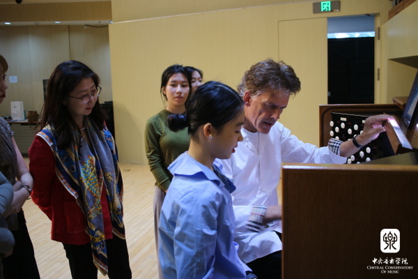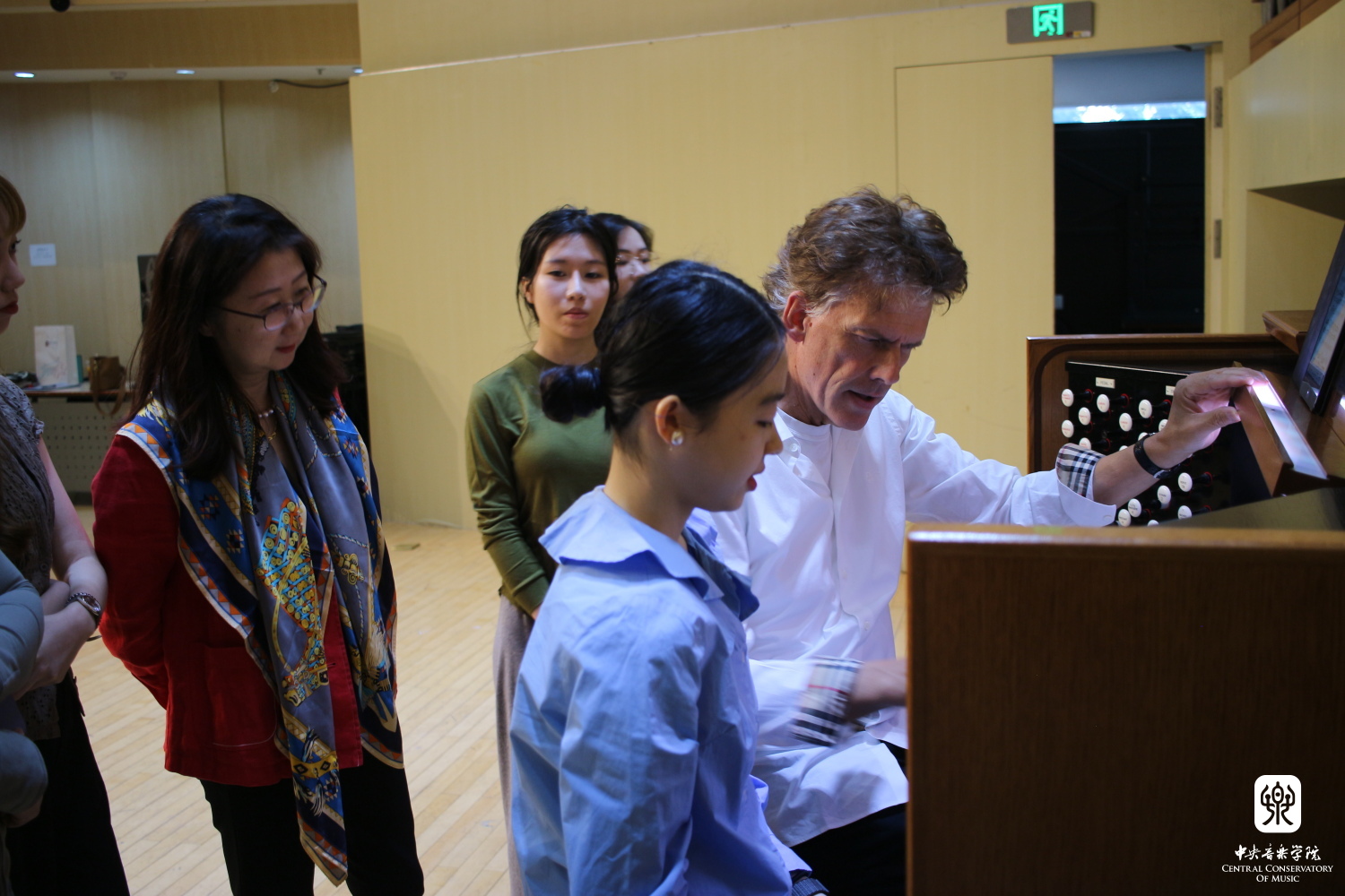 作为艺术实践周的组成部分,管风琴演奏家和教育家卢克教授对星空彩票ios版中心版管风琴教学留下深刻印象。在教学楼201演奏厅结合次日(10月18日)举办的《伟大的巴赫“管风琴三重奏奏鸣曲全集”音乐会》,卢克教授分别听取了方贤美(本科四年级)、朱若彤(本科三年级)和刘雅楠(研究生二年级)三位同学演奏,针对同学们存在的问题有的放矢地讲解演奏要领及注意事项,使同学们获益匪浅。卢克教授指出,在一场音乐会中全套演奏巴赫管风琴三重奏奏鸣曲(BWV525-530),这种演奏形式近期在欧洲音乐学府里也不多见,他预祝同学们在艺术实践周演出成功。钢琴系沈凡秀教授参加上述活动。