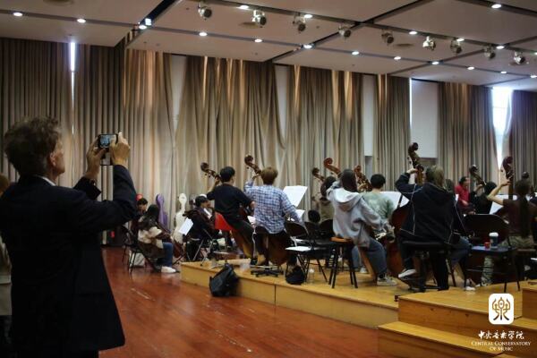 此外,卢克副校长还在教学楼1401排练厅观摩了俄罗斯马林斯基歌剧院终身客座指挥亚历山大·拉赫巴里教授(Alexander Rahbari)指挥的本科乐队课。