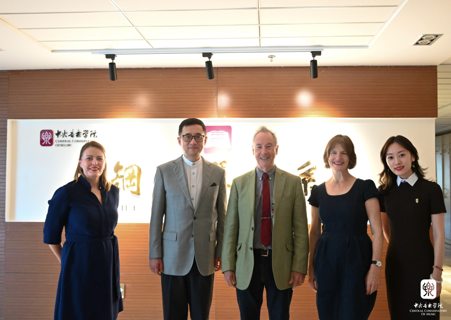 2023年10月11日下午,英国利兹国际钢琴比赛艺术总监亚当·盖特豪斯(Adam Gatehouse),首席执行官菲欧娜·辛克莱(Fiona Sinclair),教育与创意总监萨利·伊根(Sally Egan)和中国事务负责人阮琳婷(Linting Ruan) 一行来到我校,院长俞峰教授在南大殿会见了来宾。钢琴系主任韦丹文教授、国际交流处处长陶倩等参加了会谈。