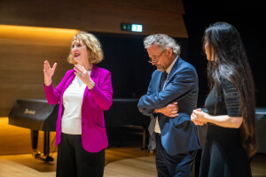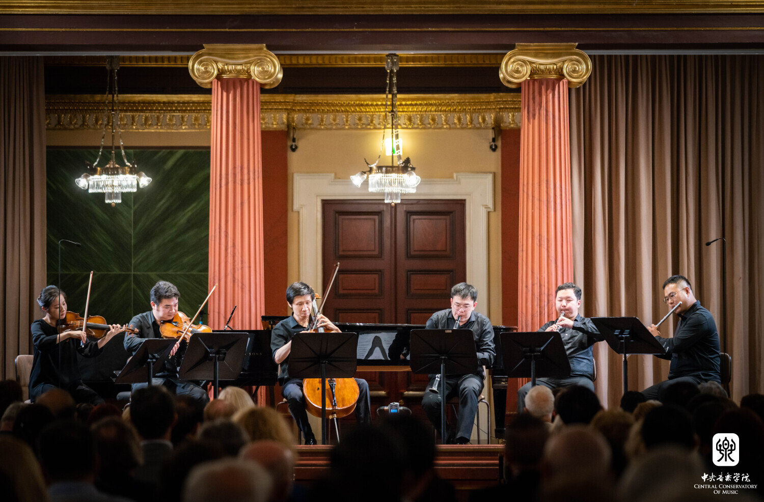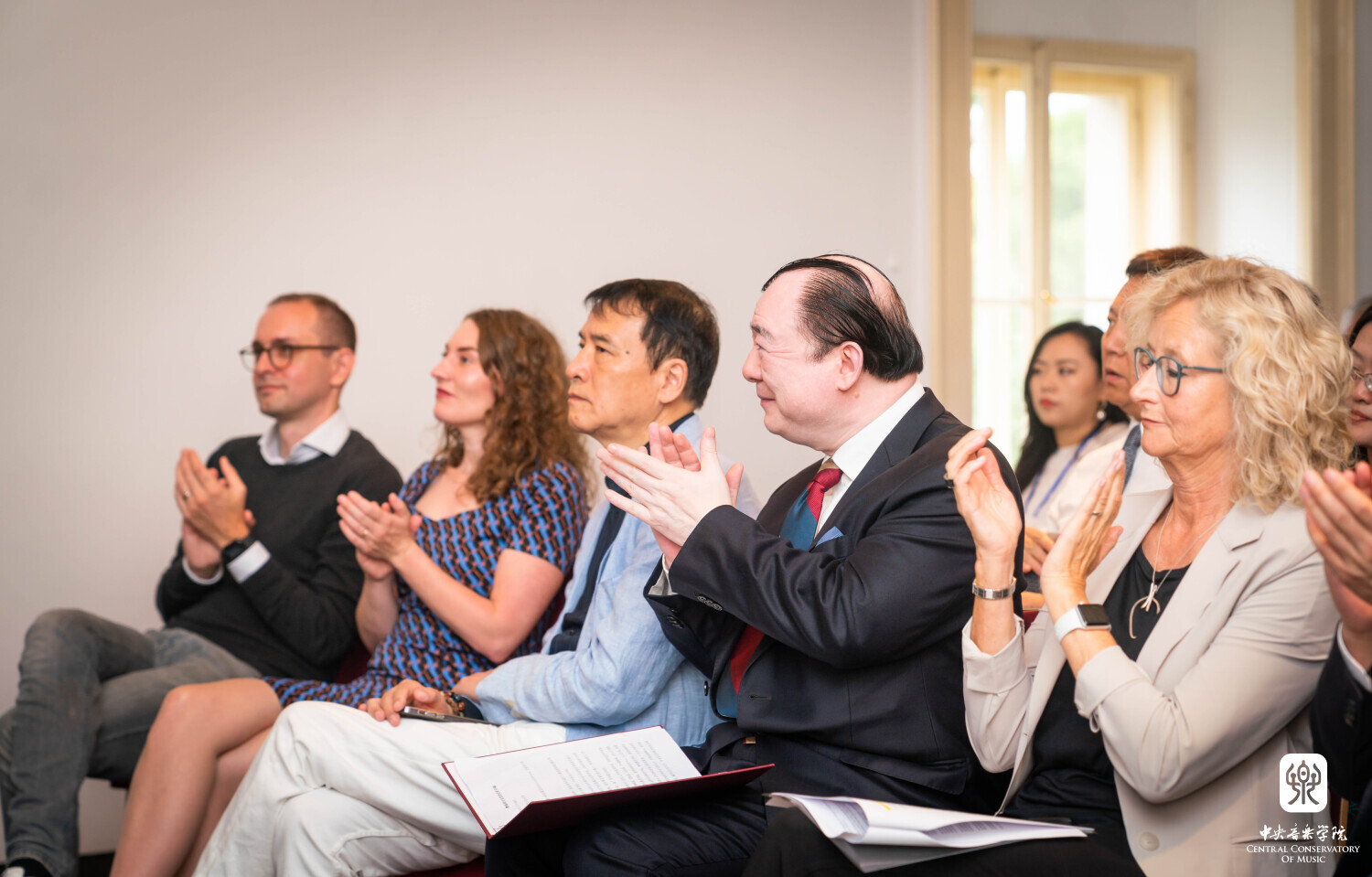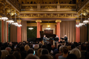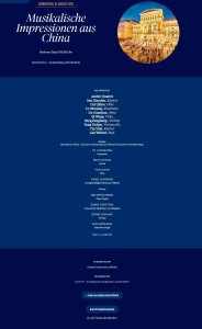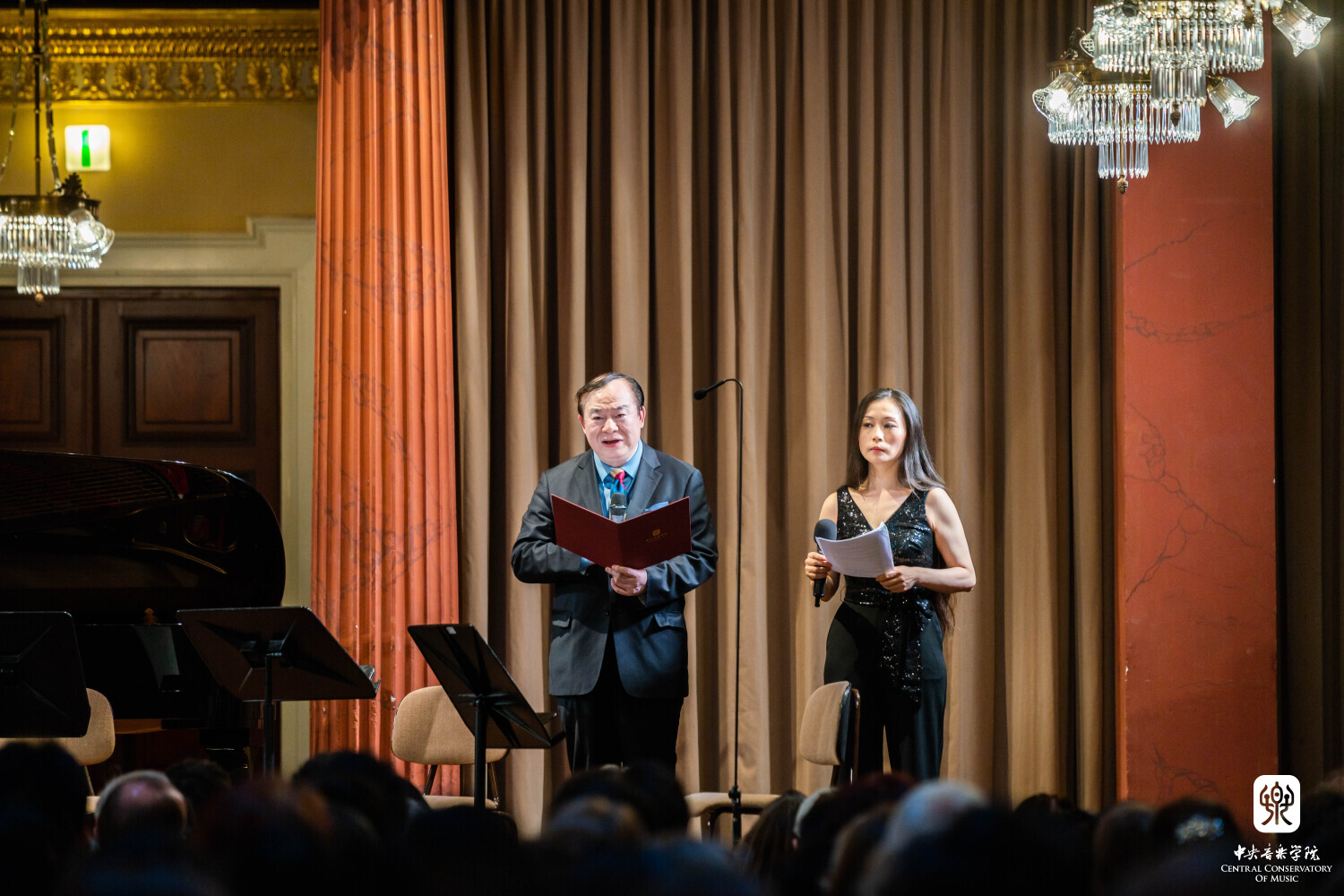 8月10日晚7时30分,“听见当代中国——中国当代作曲家室内乐作品音乐会” 在维也纳音乐家之友协会大楼的勃拉姆斯厅奏响。中国驻奥地利大使亓玫、UE出版社社长阿斯特丽德·科布莱克、维也纳国立音乐与表演艺术大学校长苏茜女士出席了音乐会。