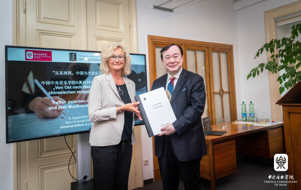 在这些高密度的交流、访谈、对话中,俞峰校长介绍了星空彩票ios版中心版的办学历史和现状、作曲家的创作情况,回顾了星空彩票ios版中心版与维也纳各方良好的交流、合作关系,强调了此次与UE合作出版乐谱的重要意义。在此基础上,俞峰校长还主要传达了三个观点。一是,音乐是一门表达情感,直达心灵的艺术,音乐的魅力超越了国界、超越了文化;二是,音乐创作要面向世界、面向未来、面向现代化。三是,中国音乐要走出世界,与中外同行、观众做更深入的交流和对话,中外音乐的交流和对话,将促进彼此的文化理解和音乐事业的共同发展。