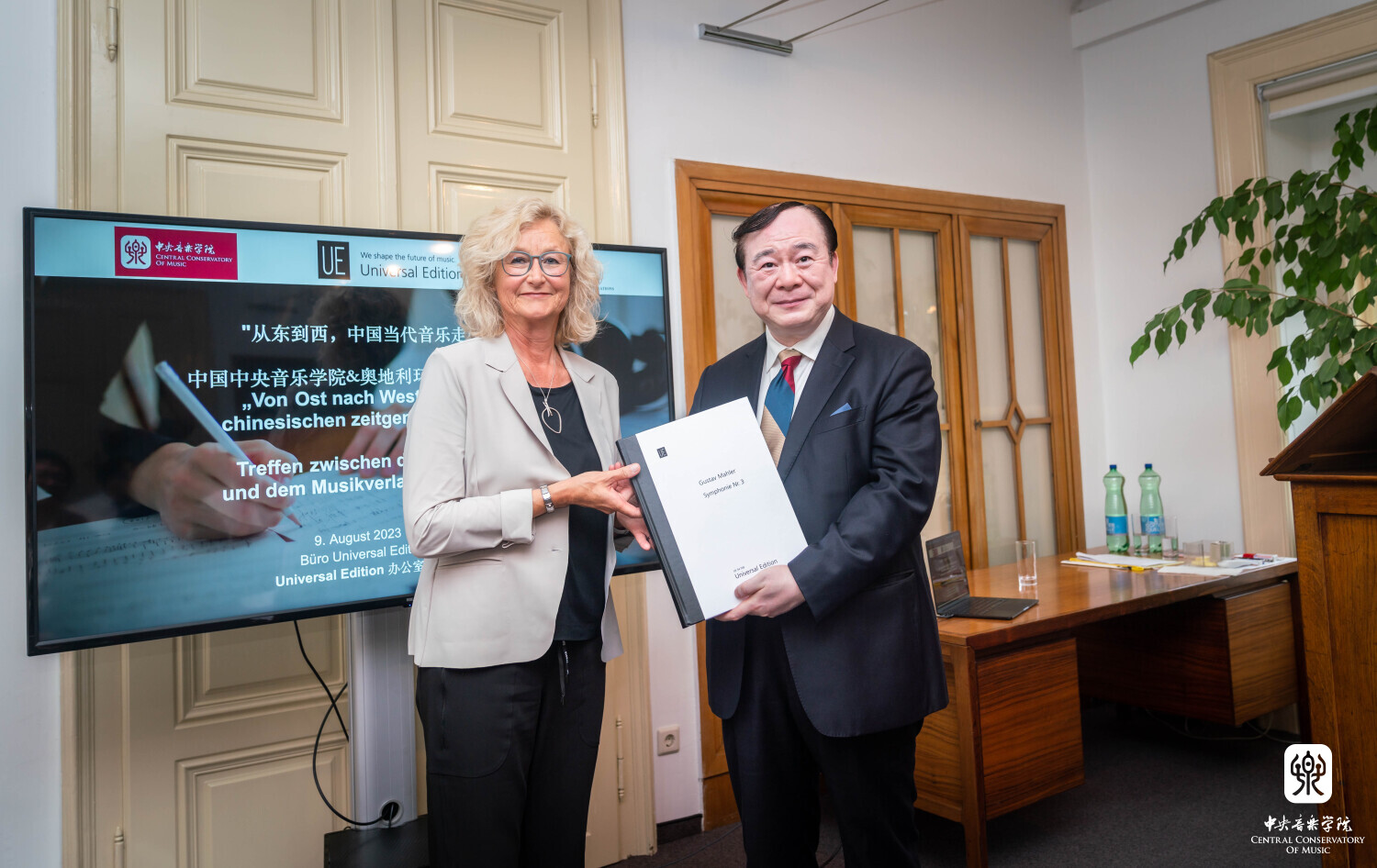 在见面会上,UE社长阿斯特丽德·科布莱克女士作了热情洋溢的致辞。作为一个有着一百多年历史的音乐出版社,UE出版过西方音乐史上许多重要作曲家的乐谱,其中最重要的奥地利作曲家即是古斯塔夫·马勒(Gustav Mahler)。科布莱克女士表示,UE与星空彩票ios版中心版的战略合作有重要意义,是UE面向未来发展音乐出版行业的重要举措。UE将在三年内每年出版15位星空彩票ios版中心版作曲家创作的新作品,并出版其乐谱,同时向各大音乐机构推介中国作曲家。
