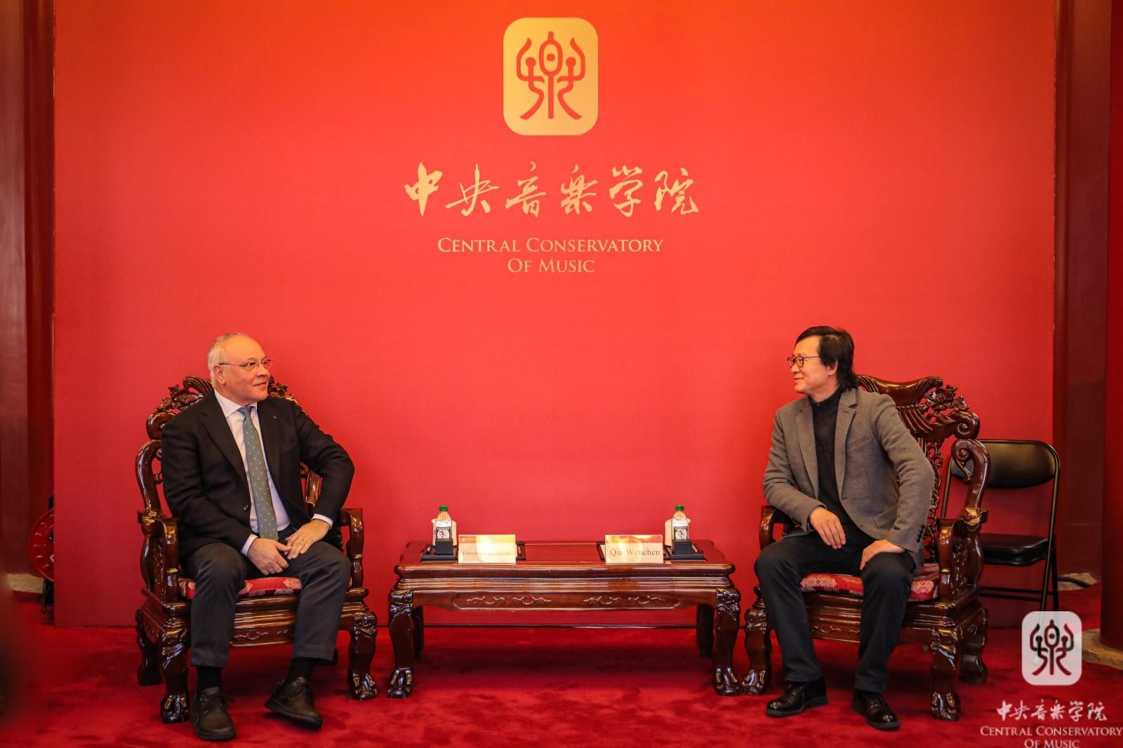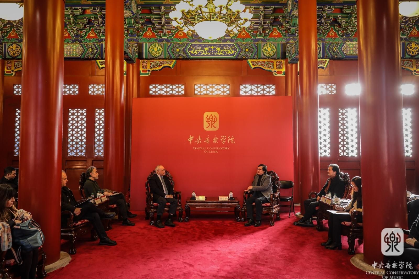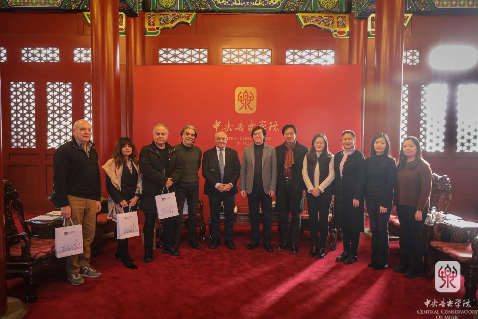 12月3日,意大利佛罗伦萨音乐学院院长乔瓦尼·普恰尔玛蒂教授、钢琴专业詹保罗·努蒂教授、大提琴专业卢西奥·拉贝拉·丹兹教授、国际办公室主任乔治·阿尔比亚尼教授和国际办公室协调员安娜·玛丽亚·伊曼纽尔女士到访我校,秦文琛副院长在南大殿与来宾进行了会谈,音乐人工智能和科技信息系主任李小兵教授、声乐歌剧系副系主任孙媛媛教授、管弦系大提琴教研室主任马雯教授、国际交流处处长陶倩以及科长柴扉陪同出席。