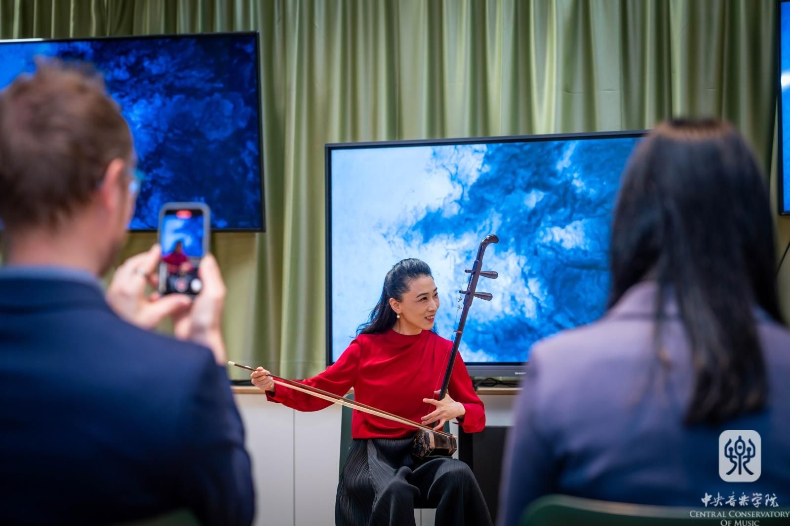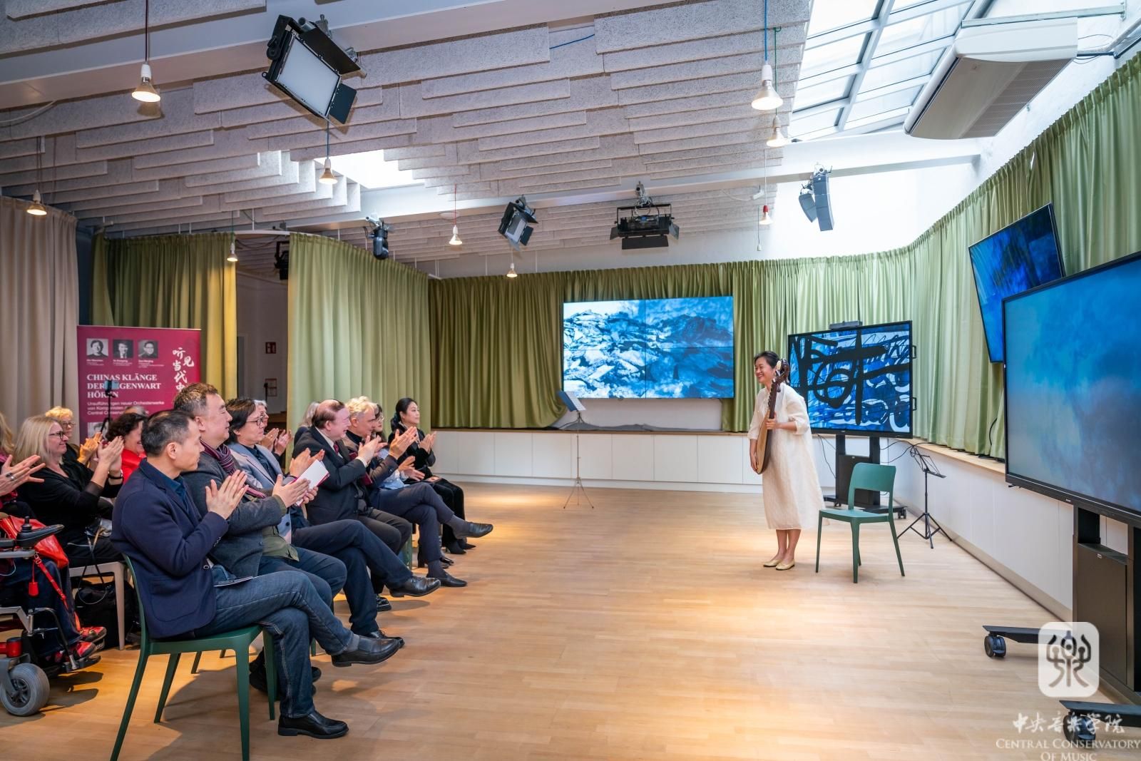 一场高水平的当代原创作品音乐会,常常在完成音乐表达的同时,会“刷新”听众对乐器的认识。如果说,在布拉迪斯拉发国家剧院的室内乐专场中,我校作曲家们让听众感受到了乐器的新异音色;那么,10月20日在维也纳举办的奥地利新视角音乐节,则让听众体验了中国民乐独特的表现力和魅力。兰维薇和杨雪两位教授先后在演出环节亮相,分别演奏了一首传统民乐和一首当代民乐曲:传统琵琶曲《陈杏元和番》、刘德海的《秦俑》,以及传统二胡曲《郿鄠调》和《双阕》。两位演奏家在演奏前对乐器历史、特色、演奏技法等作了介绍。以“讲、演”结合的方式,给现场观众带来了生动而鲜活的文化体验。