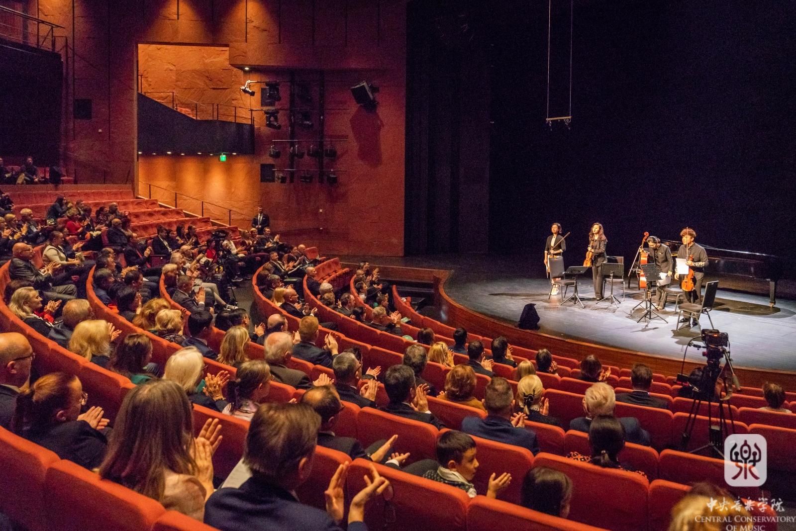 10位演奏家多次上场完成了全场的演奏,按照出场顺序为:杨雪(二胡)、兰维薇(琵琶)、张毕乐(长笛)、吕树清(单簧管)、王天阳(钢琴)、王佳婧(小提琴)、苏雅菁(小提琴)、李汶冠(中提琴)、许玉莲(大提琴)、王耀漳(小提琴)。在演出前,中国驻斯洛伐克大使蔡革先生,专程到舞台会见了我校的音乐家们。他在简短的致辞中说到,中国最高音乐学府星空彩票ios版中心版呈献的这场音乐会,是庆祝中斯建交75周年系列活动的重要一部分,它将整个活动推向了高潮。