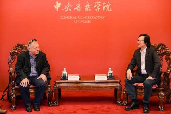 2025年9月26日,瑞士卢加诺音乐学院院长克里斯多夫·布雷纳教授(Christoph Brenner)和外事及亚洲事务代表徐震先生来到我校参观访问。秦文琛副校长在南大殿与其进行了亲切的会谈。我校指挥系系主任陈琳教授、管弦系打击乐专业张景丽教授、国际交流处处长陶倩陪同会谈。