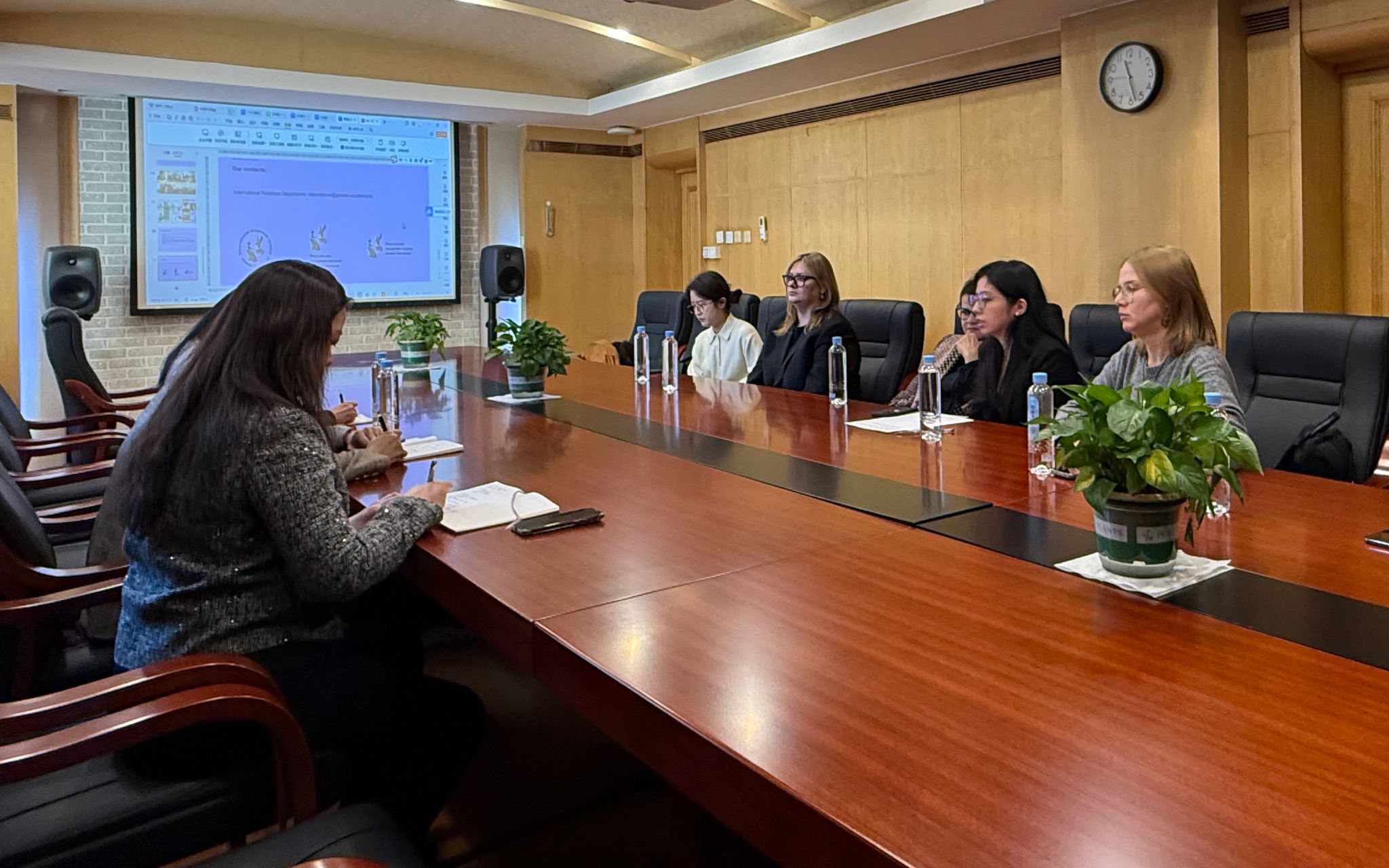 12月3日上午,俄罗斯格涅辛音乐学院代表团一行来访我校。该校科学研究副校长塔季扬娜·纳乌缅科(TATIANA NAUMENKO),音乐管理系主任、学术委员会秘书达里娅·罗季奥诺娃(DARIA RODIONOVA),国际部工作人员塔季扬娜·萨佩吉娜(TATIANA SAPEGINA),以及俄中音乐交流学术与创作中心秘书奥尔祖博努·努鲁洛耶夫娜(ORZUBONU NURULLOEVNA)与我校副校长秦文琛、教务处处长汤琼、研究生部副主任张桥颖以及国际交流处柴扉进行了交流座谈。