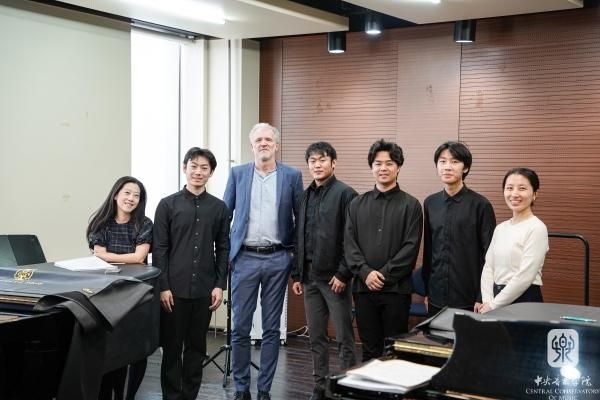 会后,尼古拉斯·克鲁格教授为研究生二年级学生额斯尼乐和本科四年级学生王土悠悠上了指挥大师班课;艾蒂安·瓦尔海恩为本科三年级学生朱若彤和四年级学生和小峰进行了热情的指导。学生们感到受益匪浅。