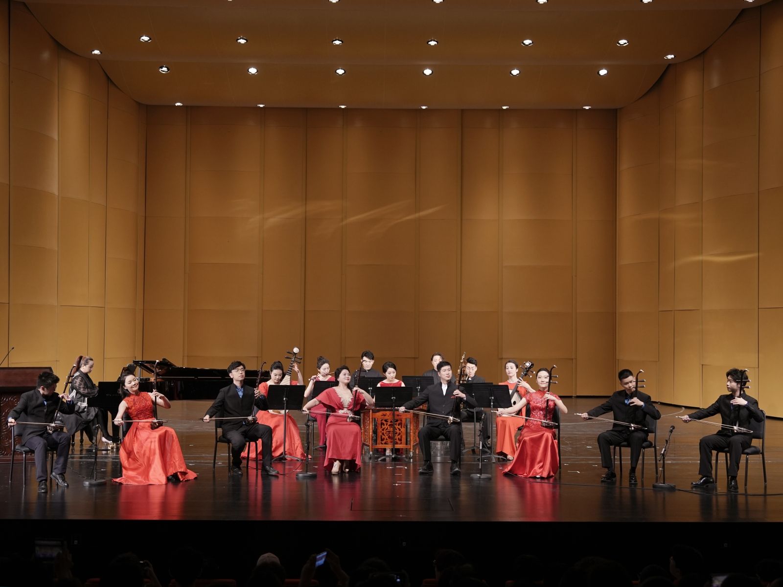 曲目选择上,以历史聚人心,以今朝塑风骨。历史与当代的对话,让传统文化向我们款款走来;音乐与语言的结合,让红色血脉永续传承。13首作品缀连成“诗”。既有百鸟朝凤、万马奔腾的壮观景象,也有传承精神、汲取力量的如磬初心;既有文化交流、文明互鉴的和谐乐章,也有直抒胸臆、质朴表白的深情礼赞。从民乐合奏《光明行》的勃勃英气,到钢琴协奏曲《黄河》的波澜壮阔;从古琴《流水》的涓涓细流,到民族室内乐《敦煌》的气势磅礴,曲曲精选,