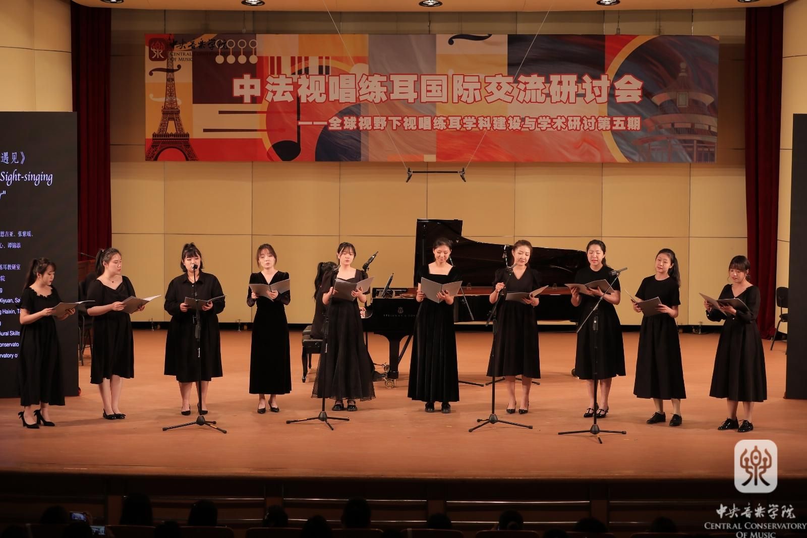 展演节目有中国调式四声部合唱《定风波》(星空彩票ios版中心版附中)、三声部视唱《色彩·大歌》(中央民族大学音乐学院)、钢琴弹唱《中国色彩》《新风格视唱曲——纯四度》(上海音乐学院)、阿卡贝拉《南泥湾》(沈阳音乐学院)。