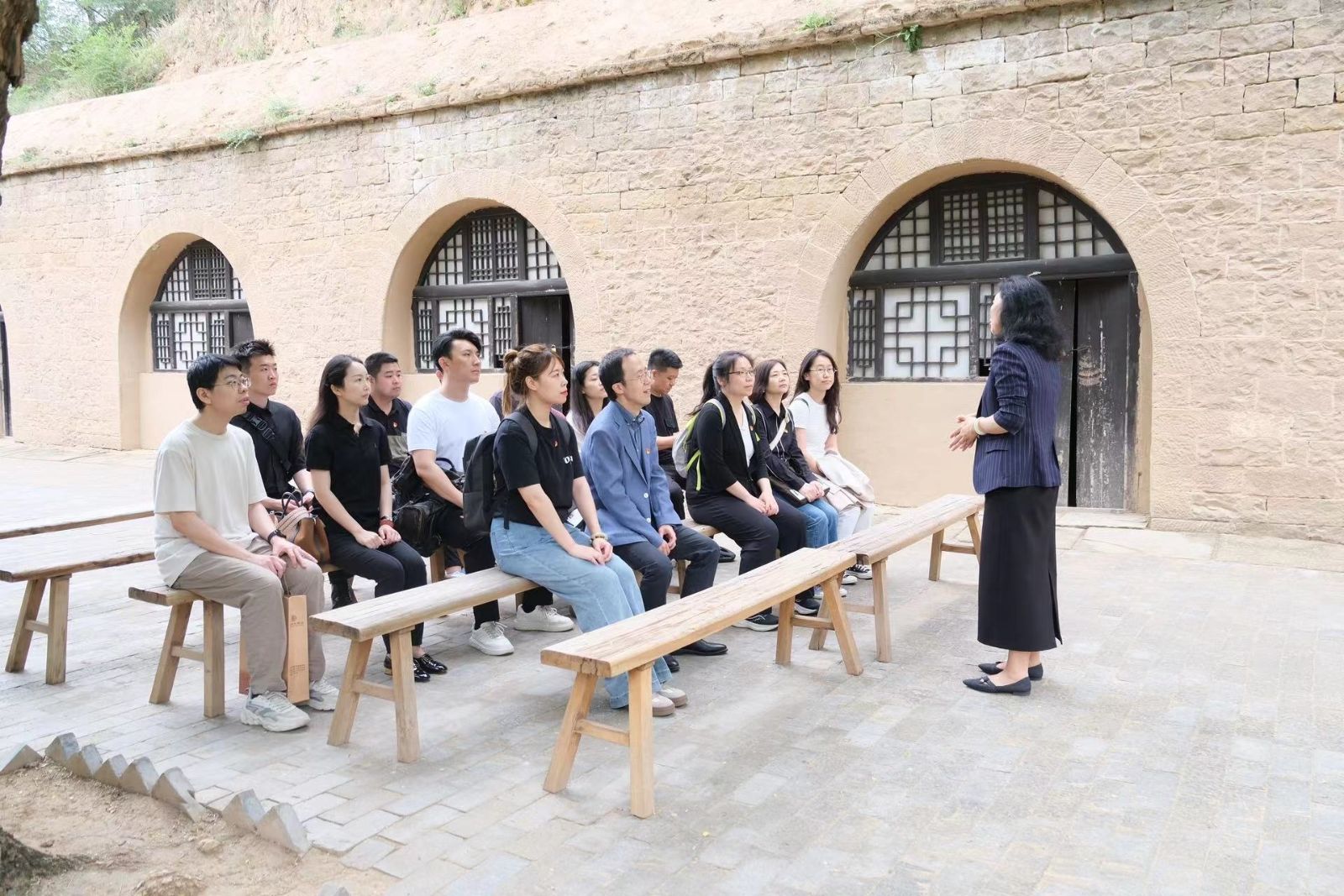5月25日,教师们追随革命伟人的足迹,探访了杨家岭革命旧址。此处是中共中央1938年至1947年所在地,党中央在这里召开了文艺座谈会、中共第七次全国代表大会等重要会议。教师们参观了中共中央办公旧址和毛泽东、周恩来等老一辈革命领袖旧居。沿着参观路线落座窑洞旁,中国延安干部学院冯建玫教授为教师们带来了一场特殊的党课现场教学“学习习近平总书记关于初心使命的重要论述——白求恩精神与共产党人的价值追求”。她生动叙述了加拿大共产党员、国际主义战士、著名胸外科医生亨利·诺尔曼·白求恩传奇的一生。在冯教授娓娓道来、声情并茂的讲述中,教师们无不被白求恩高尚的、纯粹的、有道德的、脱离了低级趣味的、有益于人民的精神所感动,这种英勇纯粹的坚韧品格和无私情怀深深地感召着每一位教师。