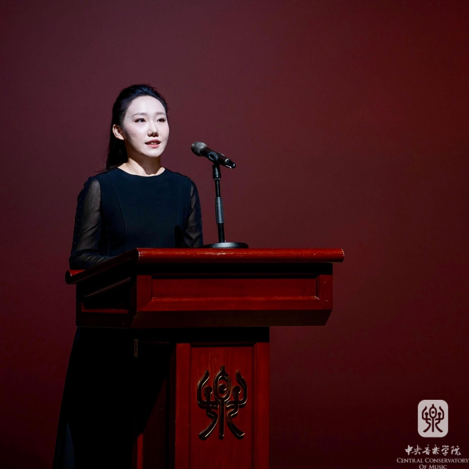 新入职教师代表、民乐系青年教师高白一直铭记着自己老师“要学艺,先做人,唯乐不可以为伪”的谆谆教诲。从学生到教师,当身份发生转变,她深感责任重大,只能更加严格地要求自己,怀着一颗感恩的心,认真教学、努力创作,尽己所能地为学校、学生们贡献力量。