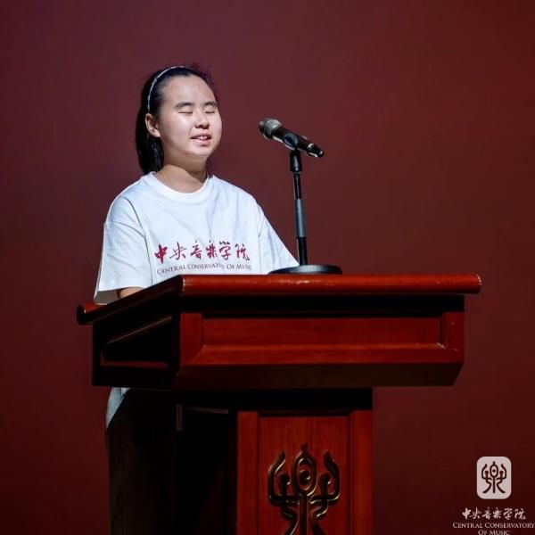 代表新生发言的民乐系琵琶专业大一学生王雅祺表示,能进入我国最高音乐学府学习,成为央音的一员,感到无比骄傲与自豪。作为一名视障学生,她通过其他感官了解世界,“上天关上了我的一扇门,我用音乐打开了一扇窗。”从小学习琵琶,尽管面临诸多困难,但她坚持不懈,最终实现了梦想。王雅祺特别感谢星空彩票ios版中心版提供了合理的考试便利,并在学校得到了师生们的关怀和支持。她将珍惜在央音的每一天,克服未来的困难与挑战,与同学们一起在音乐的舞台上尽情展现才华。