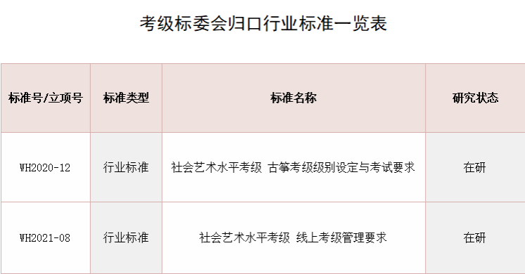 全国社会艺术水平考级服务标准化技术委员会归口行业标准