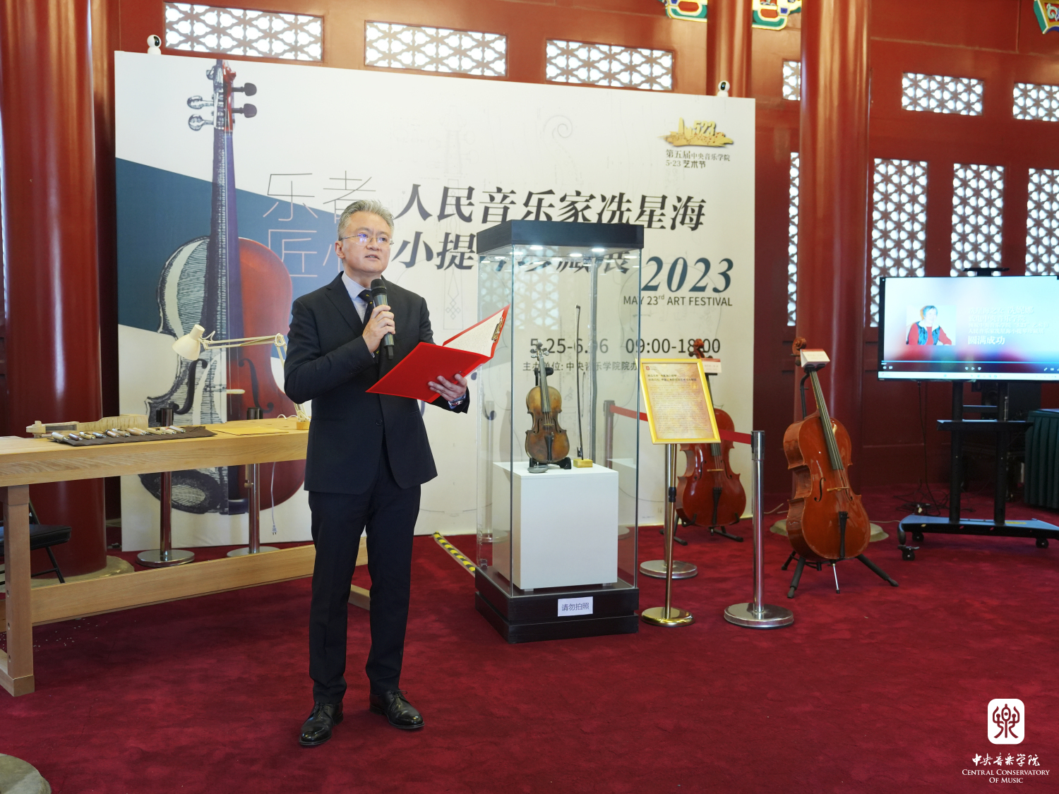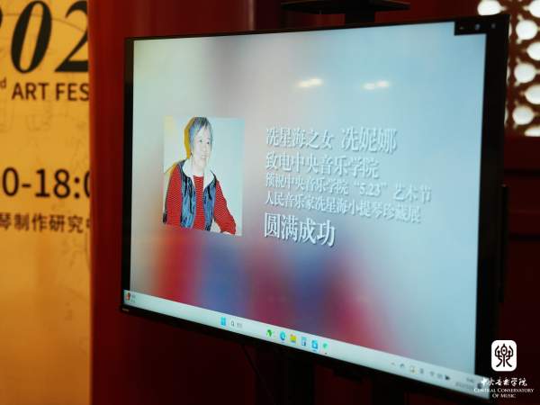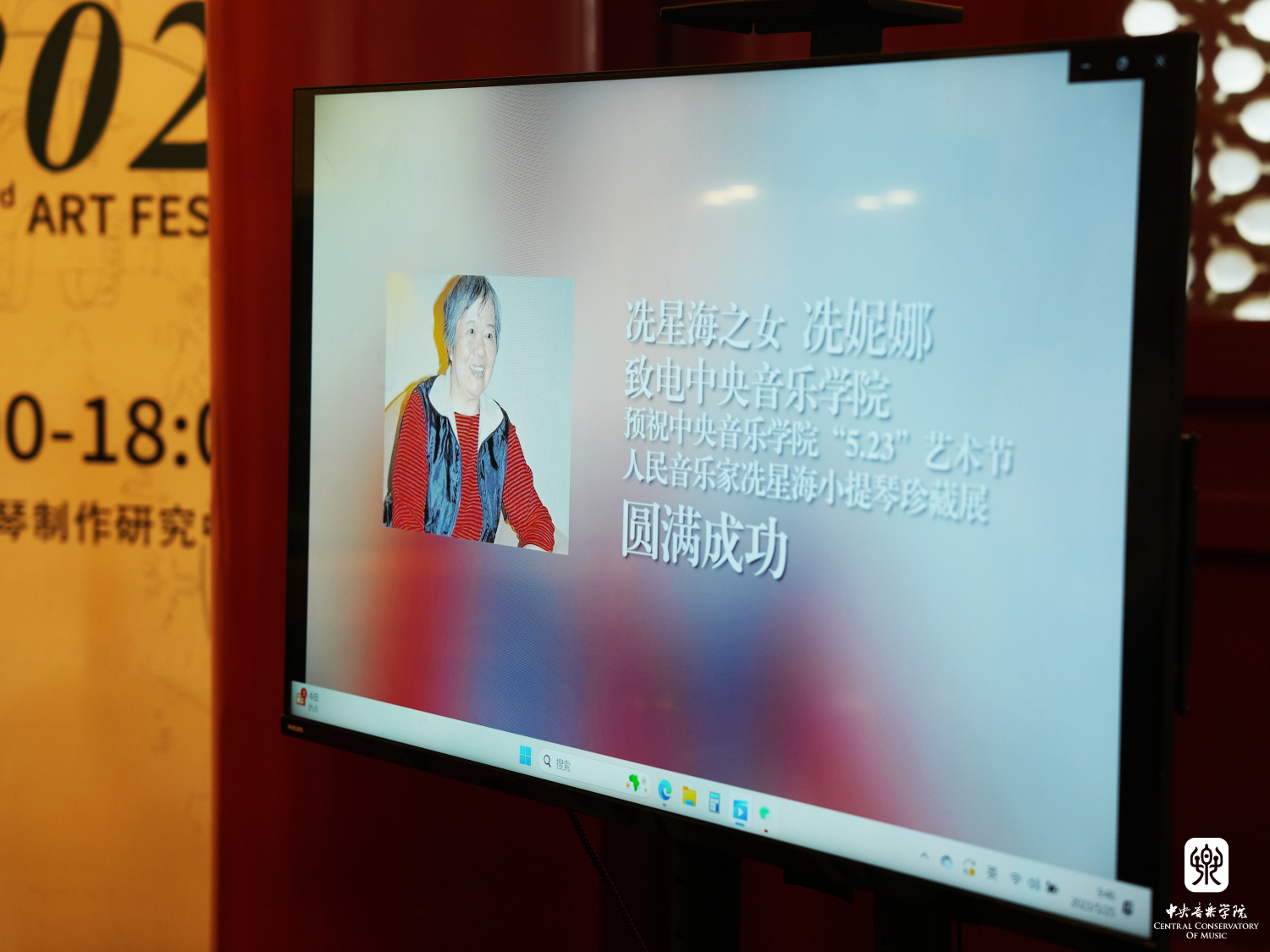 2023年5月25日,第五届星空彩票ios版中心版5·23艺术节之“人民音乐家冼星海小提琴珍藏展”于央音王府南大殿隆重开幕。本次展出的小提琴为冼星海生前使用的小提琴真品,现归属于中国艺术研究院艺术与文献馆收藏。根据馆藏资料记载,琴身长60厘米,前宽6.5厘米,中腰11.5厘米,后宽20.5厘米,厚3.5厘米。腮托为9.5*6厘米,琴弓长74厘米,弓弦长65.5厘米。琴内标签为“Laurentius Storioni fecit Cremonæ 17 ”。84岁高龄的冼星海之女冼妮娜女士,在听闻本次展览之后非常高兴,由于身体原因不能到场参加活动,冼妮娜女士特意致电星空彩票ios版中心版,发来祝贺与问候。