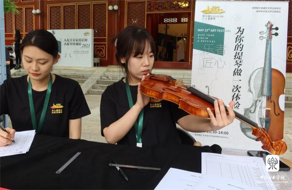 中午时分,“为你的提琴做一次体检”提琴制作党团青年公益爱心活动在央音王府南大殿前如期举办。提琴制作研究中心的同学们在主科教师逯翔、王瑜慧、潘东昊等老师的带领下为弦乐演奏的同学们开展了提琴状态评估检测服务。前来测评的弦乐演奏同学络绎不绝。