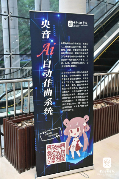 为了让观众切身体会到AI音乐的来临,在观众入场时,音乐厅门口特别设置了“央音AI自动作曲系统”试用活动。观众扫码之后,输入速度、歌词,并选择歌手音色类别,就能在23秒内听到一首完整的歌曲成品。