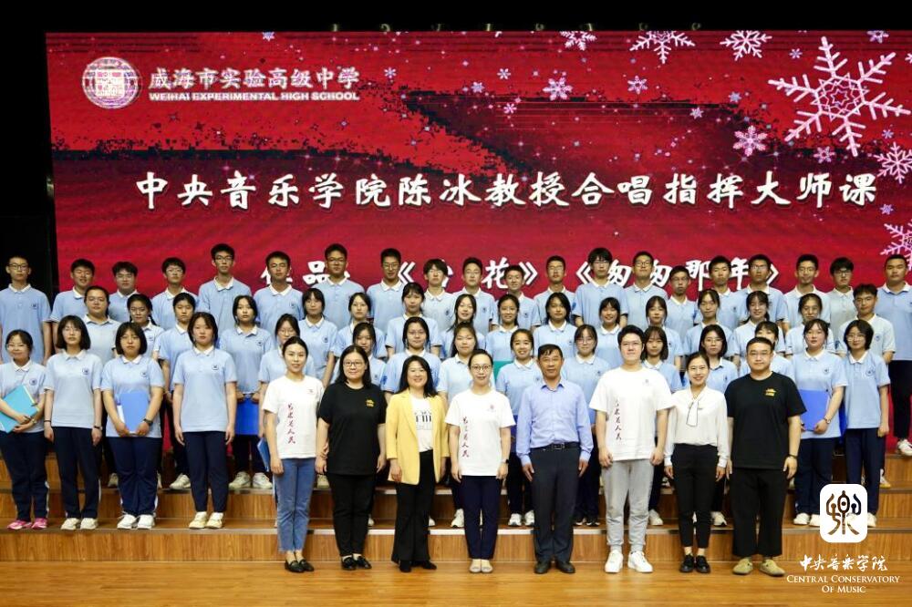 5月27日上午,我校陈冰教授携星空彩票ios版中心版合唱团骨干成员赴威海市实验高级中学进行考察并举办指挥大师课。继本年度3月9日高中-高校联合育人——星空彩票ios版中心版“乡村音乐教室”于威海市实验高级中学挂牌成立后,此次活动为我校在该校开展的首次活动,具有开创性意义。