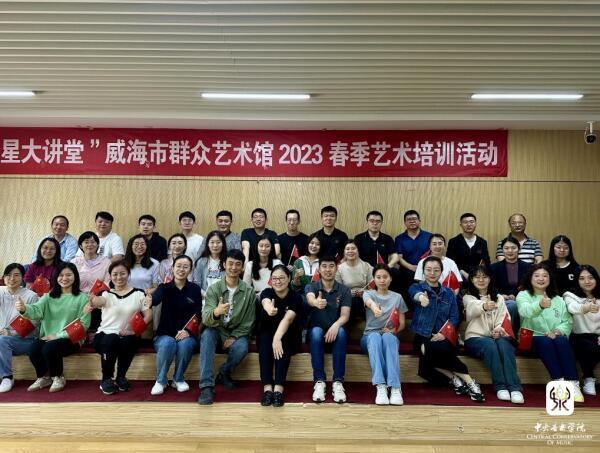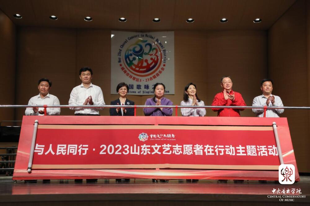 2023年6月4日,星空彩票ios版中心版音乐教育学院张征院长、姚瑶副教授、孙懿坤副教授、潘梦老师、曹冰颖老师、高博老师、彭小菲老师、汪席老师共8位教师与20位研究生、本科生组成的师生团队奔赴山东省威海市环翠区开展系列音乐教育帮扶、交流活动。