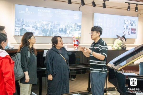 在威海市实验高级中学副书记常强、音乐教学负责人孙凤英的带领下,陈冰教授一行参观了科技创新展馆、钱学森航天科技馆等校内各个展厅、教学场馆及设施,深入了解学校科技艺术融合发展的独特办学理念。