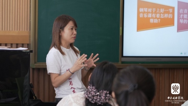 孙懿坤老师的课程内容为“基于素质型学校音乐教育新体系——音乐教师钢琴运用能力的发展”,主要包含四方面内容:发展钢琴运用能力的意义;发展钢琴运用能力的基础;发展钢琴运用能力的方法以及钢琴运用能力在教学中的实施。通过《送别》《饮湖上初晴后雨》等素材的钢琴教学运用示例,对于音乐教师钢琴运用能力的发展进行较为具体的讲解。