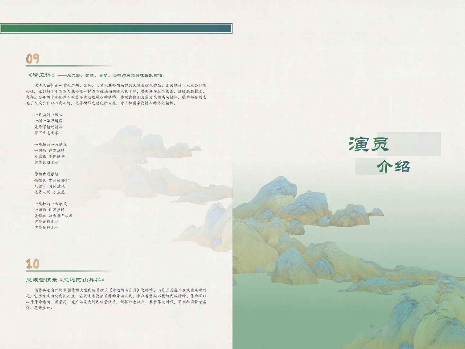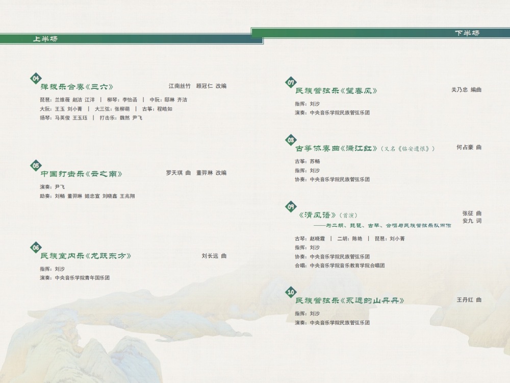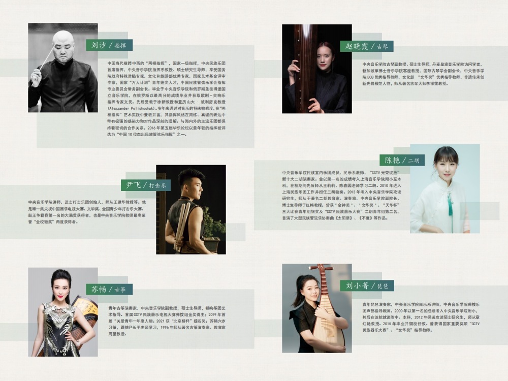 本场音乐会由星空彩票ios版中心版副校长于红梅担任艺术总监、民乐系主任章红艳担任音乐总监,特邀指挥家刘沙担任指挥,汇集以民乐系青年教师为主体组成的星空彩票ios版中心版青年民乐团,优秀毕业生组成的民族室内乐团及在校师生组成的民族管弦乐团,构建顶尖演出阵容,携手音乐教育学院合唱团等优秀师生同台共演。以重奏、协奏、合唱、民族管弦乐多种形式,奏响《蒙山沂水情》《三六》《清风语》(首演)《永远的山丹丹》等经典、编创、原创作品。以人民性、时代性、民族性的精神内涵,融入音乐会的创作与演绎,展现中华儿女意气昂扬的当代风貌、涵养于中华文化的家国情怀与为国为民奋斗奉献的崇高精神。