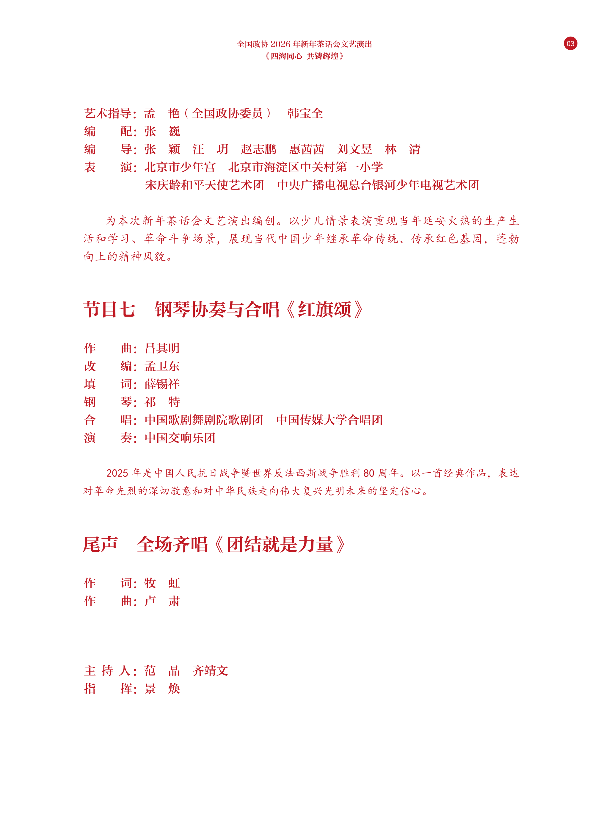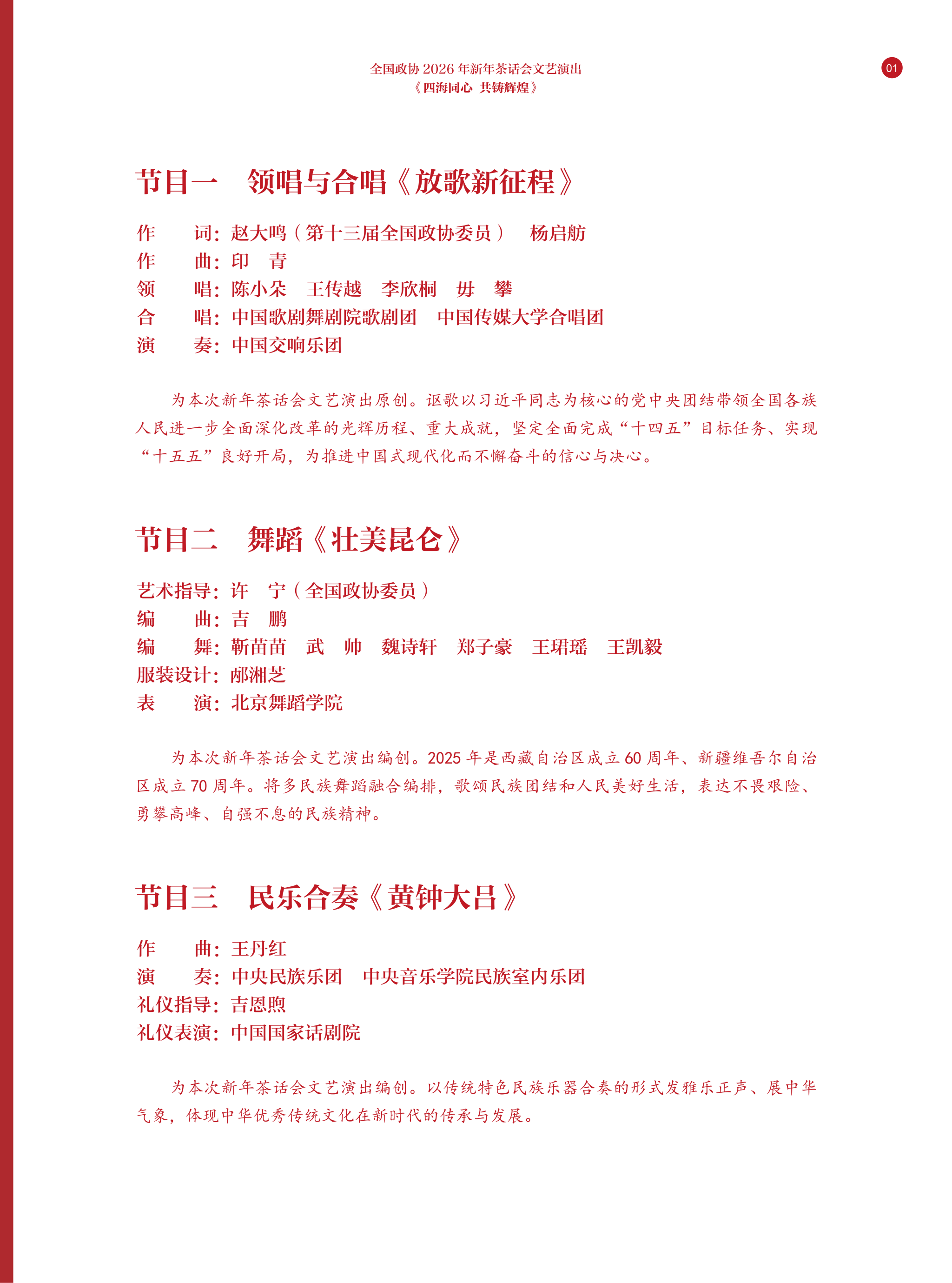 2026年的全国政协新年茶话会文艺演出,我校共参演3个节目。