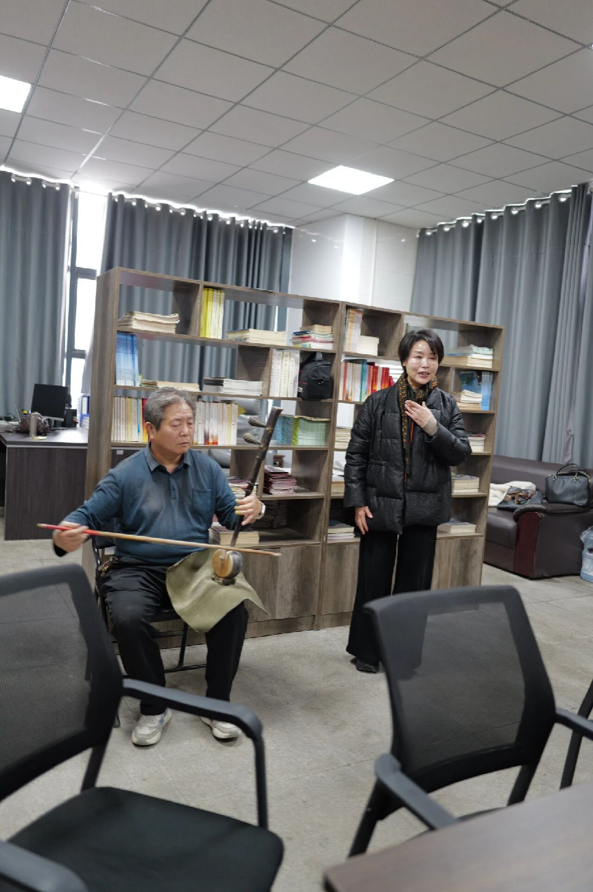 地处豫鲁苏皖四省交界的商丘,也是中原地区戏曲艺术传承与发展的重要中心,拥有包括豫东调、四平调、花鼓戏等在内的多个剧种。在商丘市戏曲保护传承中心,课题组一行同有关人士展开深入对话,中心领导、戏曲表演艺术家、作曲家等分别从各自角度出发,同课题组有关学者进行了卓有成效的交流,也为后续进一步的深入合作打下基础。交流期间,豫东调、四平调的艺术家为课题组带来了精彩的唱段,充分展现了中原戏曲艺术的独特魅力。