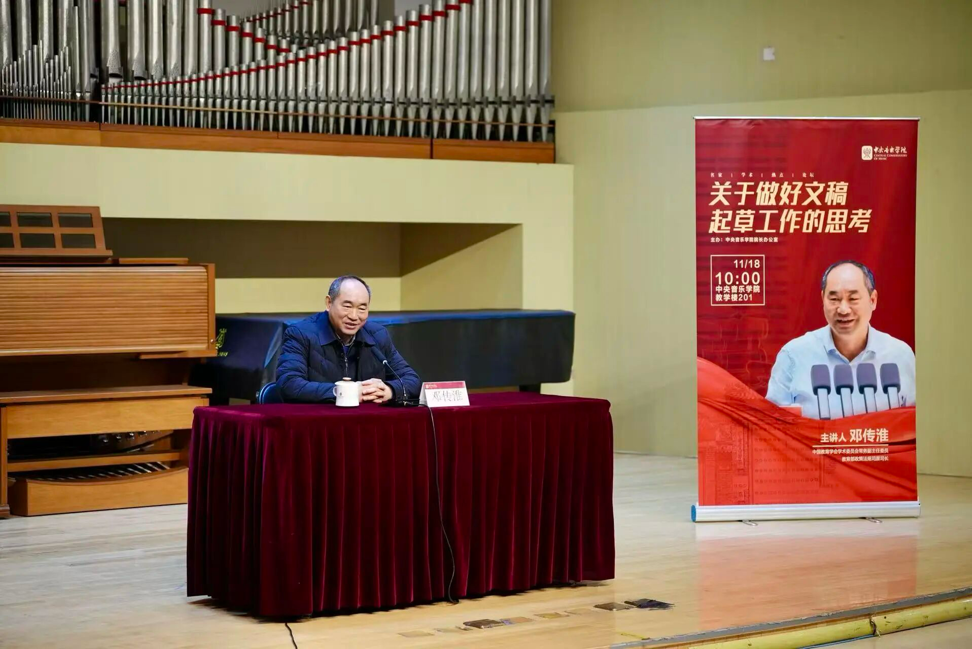 为深入贯彻落实新时代公文处理工作的新要求,进一步提升我校文稿撰写的专业化、规范化水平,11月18日上午,学校特邀中国教育学会学术委员会常务副主任委员、教育部政策法规司原司长邓传淮作《关于做好文稿起草工作的思考》专题讲座。讲座由党委副书记、纪委书记胡守强主持。党政部门全体人员、各院系管理人员参加培训。