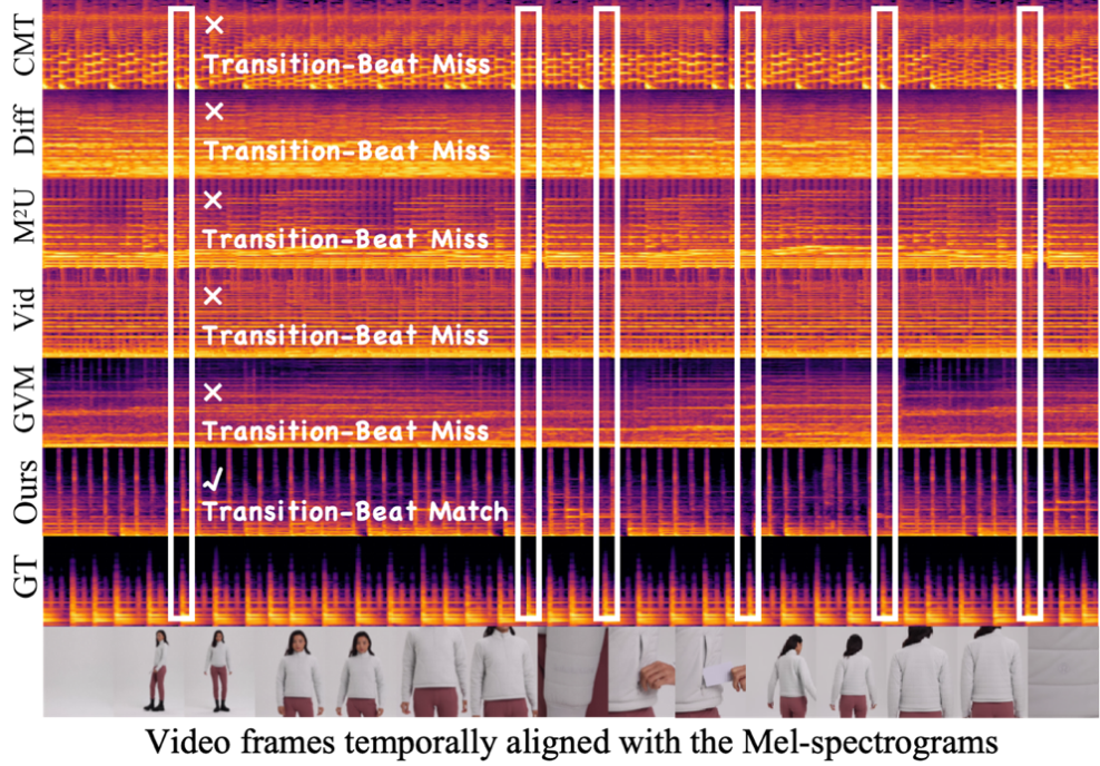 另一方面,时间与节奏对应关系的精度缺失。实现视频中关键事件(如场景切换、动作变化)与音乐核心元素(如节拍、重音)之间的高精度同步,对于构建流畅、富有感染力的沉浸式视听融合体验至关重要。然而,现有模型在处理此类时间同步任务时,大多仅能在局部片段或粗粒度时间尺度上实现有限的匹配,难以达到帧级精度的精准一致。这种“转场-节拍”对齐能力的不足,严重制约了生成音乐在时间维度上与视频动态变化的契合度。