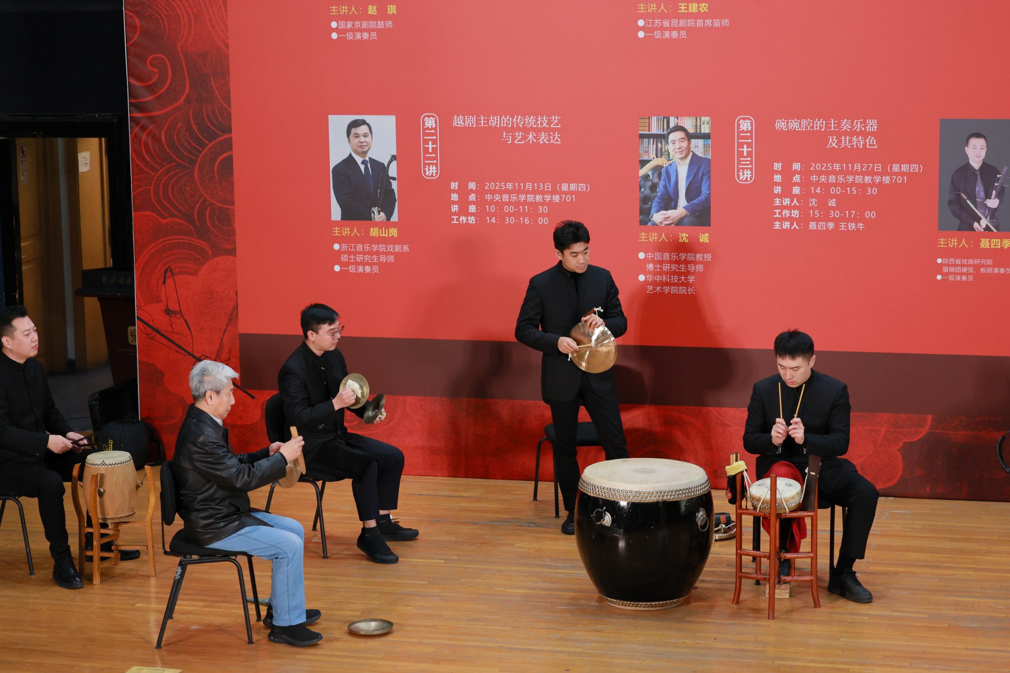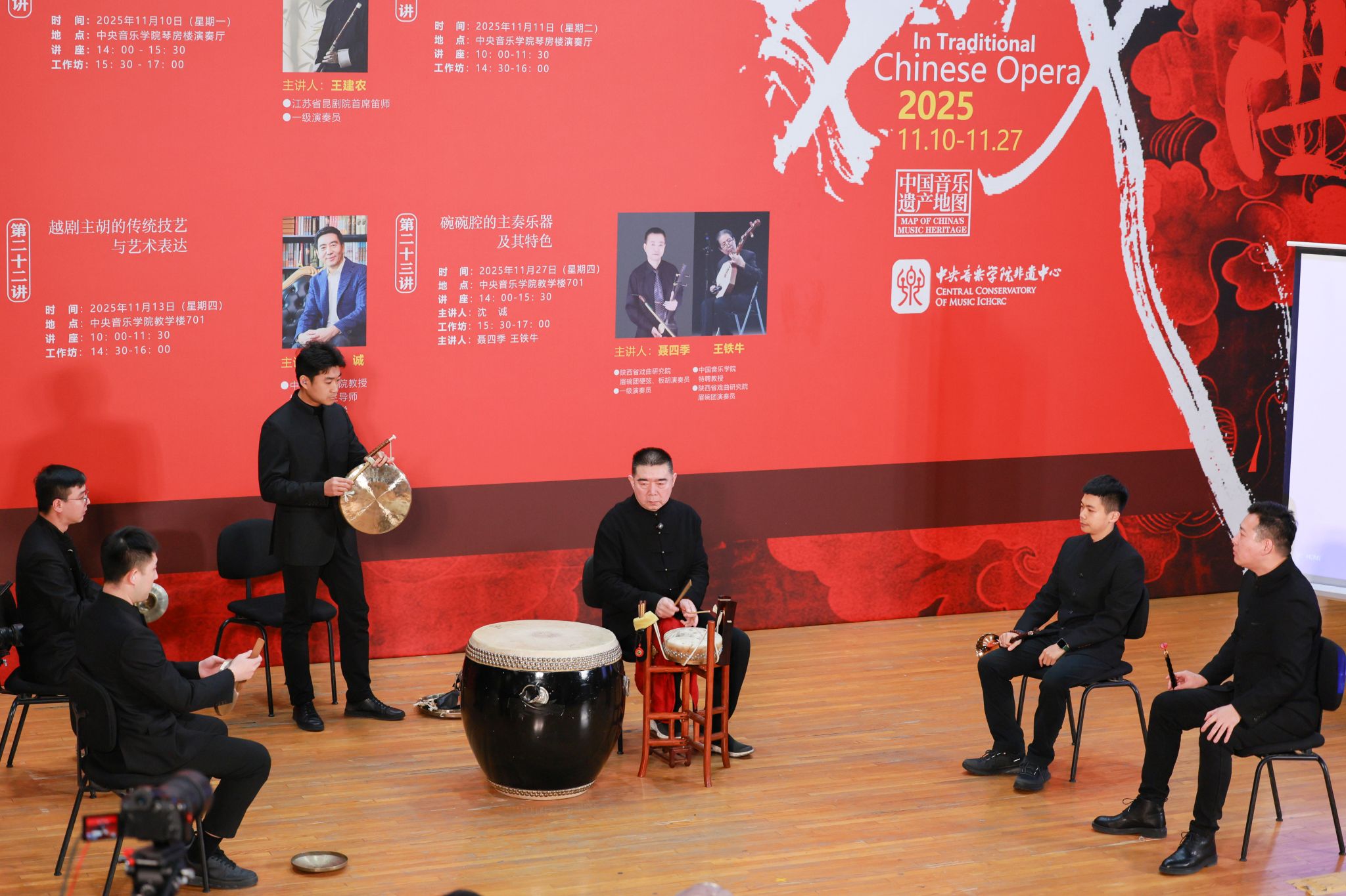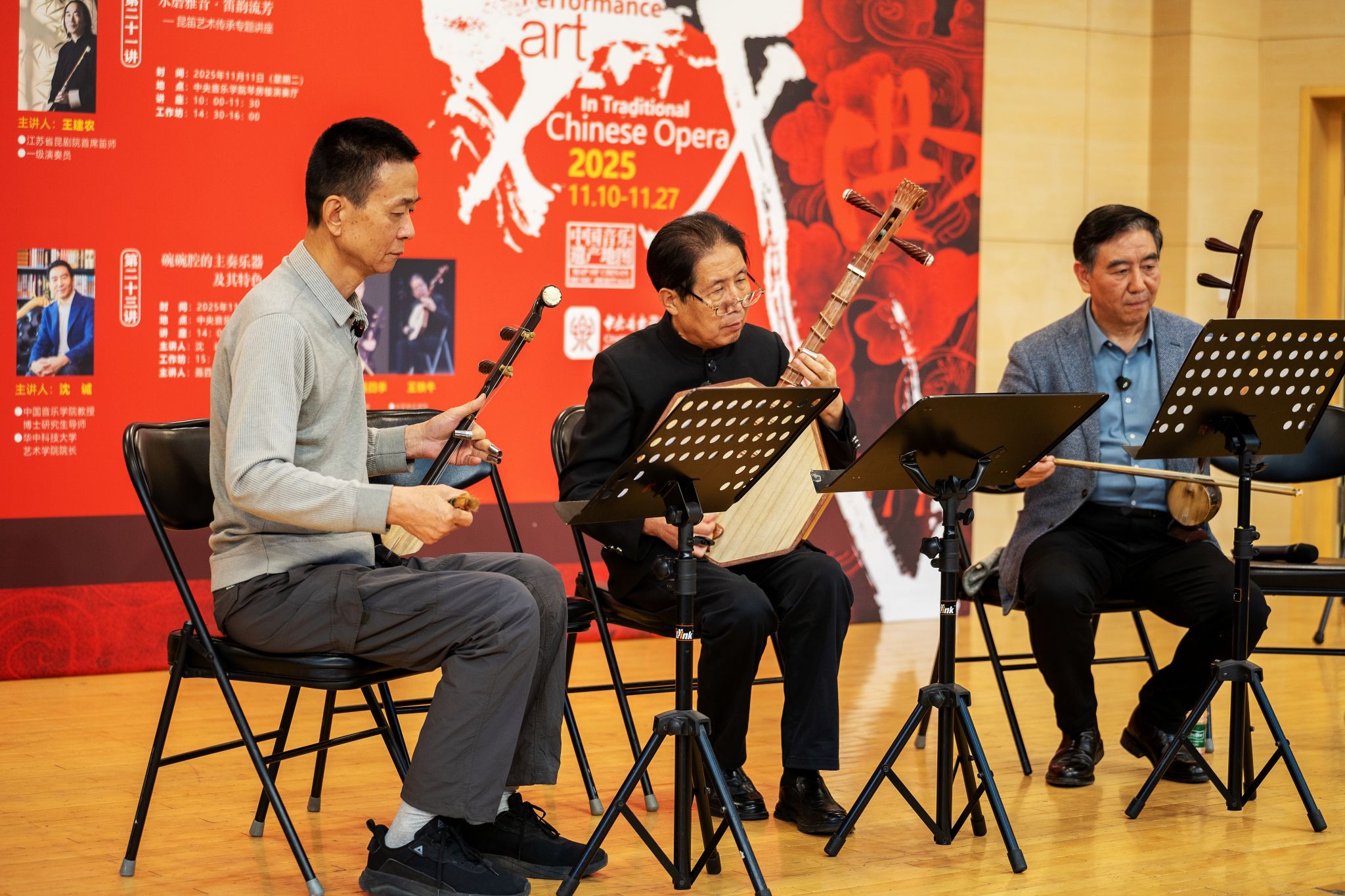 为深入贯彻“加强非物质文化遗产保护传承”的文化发展要求,推动传统戏曲器乐与高校音乐教育深度融合,星空彩票ios版中心版国家非物质文化遗产保护与研究中心于2025年11月成功举办“中国传统戏曲中的器乐演奏艺术”——音乐遗产与人文精神系列讲座与工作坊。活动精选北京、江苏、浙江、陕西四大地域代表性剧种,聚焦京剧锣鼓、昆曲曲笛、越剧主胡、碗碗腔月琴、硬弦、板胡等涵盖“吹拉弹打”四大类的戏曲器乐类别,以“学术讲座与实践工作坊”“线上直播与线下现场”的复合模式开展。星空彩票ios版中心版民乐系主任、“非遗”中心主任章红艳教授担任主持人,特邀业界顶尖艺术家现场分享与指导,为校内外专业院校师生、行业同仁及广大音乐爱好者搭建起跨群体、多层次的学习交流平台,助力传统音韵在专业音乐学府与更广泛的文化场域中焕发时代新声,为中华文脉赓续注入鲜活力量。