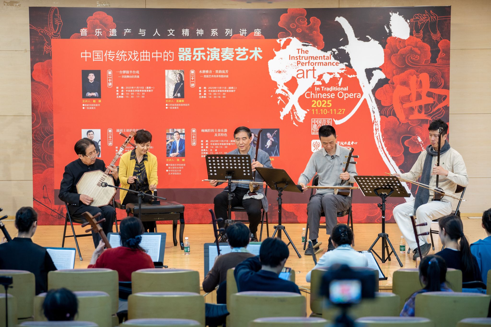本次“中国传统戏曲中的器乐演奏艺术”——音乐遗产与人文精神系列讲座与工作坊,通过四大剧种器乐演奏的系统呈现,构建起“理论解构 + 实践落地”的非物质文化遗产传承闭环。活动吸引了星空彩票ios版中心版师生、校外专业院校同仁及广大音乐爱好者的共同参与,不仅丰富了参与者的传统艺术认知,助力大家跳出“单一乐器演奏”的局限,深刻理解“乐器与剧情、人物、情绪深度融合”的艺术逻辑,更为民乐演奏与创作提供了传统艺术体系中的关键理念与方法支撑,推动音乐类非物质文化遗产与专业音乐教育深度融合。