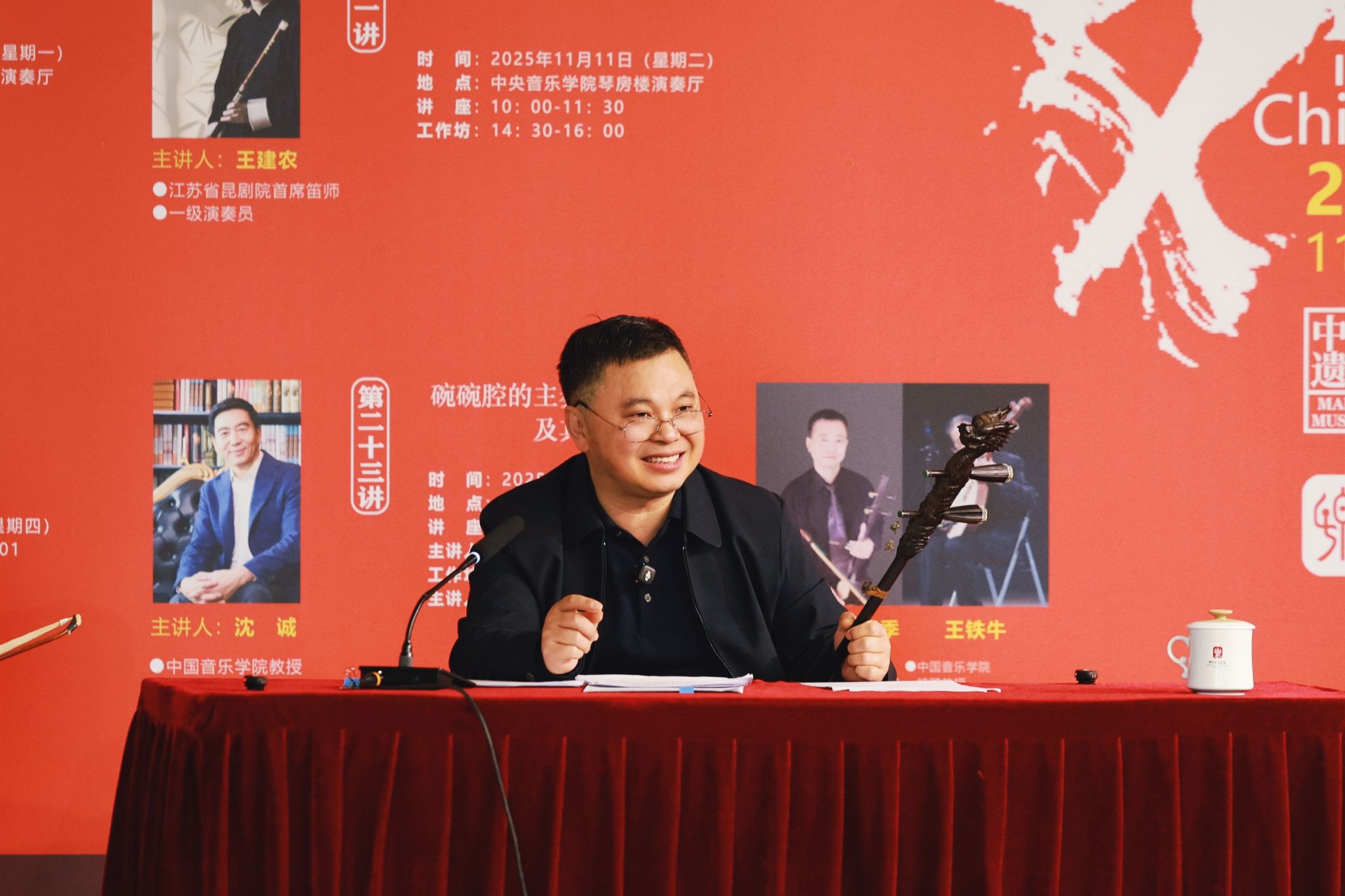 11月11日,昆笛专题讲座“水磨雅音・笛韵流芳”如期举行,江苏省昆剧院首席笛师、国家一级演奏员王建农主讲,他从昆曲“静、淡、圆、逸”的整体美学切入,指出昆曲节奏“以戏为中心,以人物为逻辑”,这种“戏曲时间”的理解是进入中国传统音乐体系的基础。
