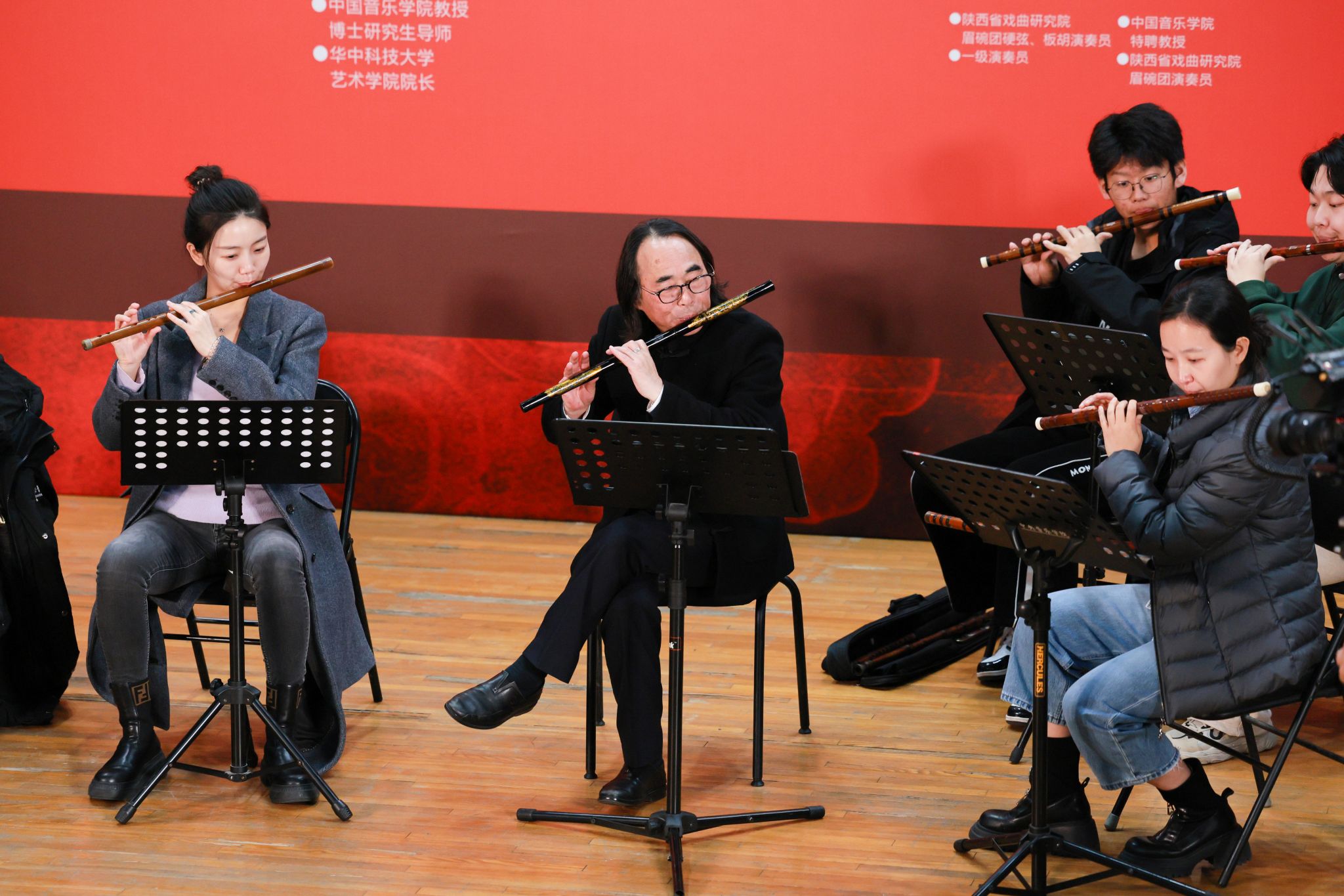 11月27日,系列讲座收官之作“碗碗腔的主奏乐器及其特色”圆满举办。中国音乐学院博士研究生导师、现任华中科技大学艺术学院院长沈诚教授担任主讲人;同时邀请陕西省戏曲研究院眉碗团一级演奏员、著名硬弦演奏家聂四季,中国音乐学院特聘教授、陕西省戏曲研究院眉碗团著名月琴演奏家王铁牛担任工作坊主讲人。沈诚在开篇致辞中指出:“戏曲音乐是中华传统音乐的主体与‘富矿’,专业音乐教育需打破与民间传统的隔阂,深入音乐类非物质文化遗产相关田野调查,汲取艺术创作与教育实践的源头活水。”