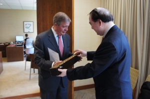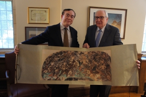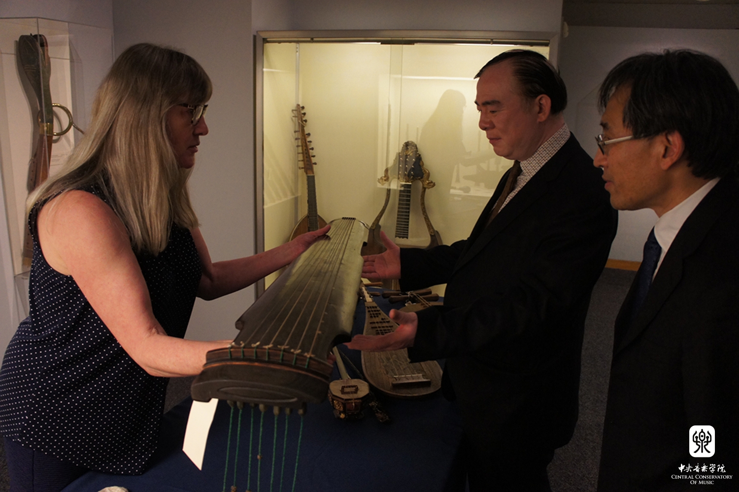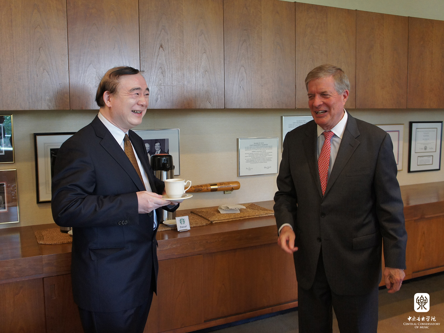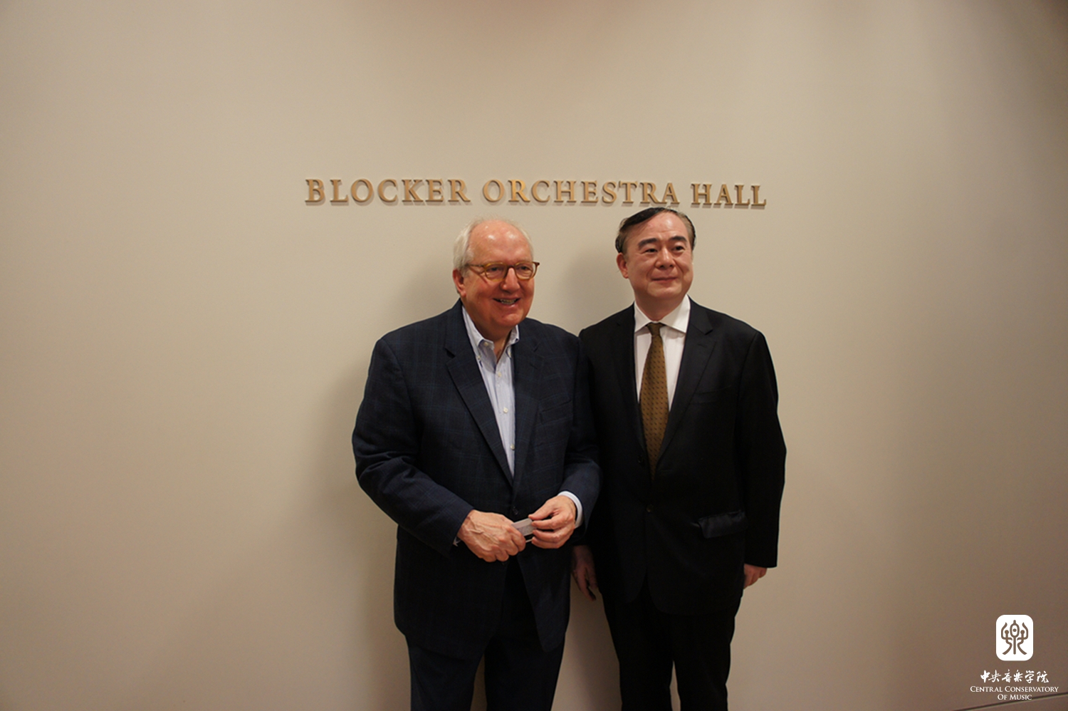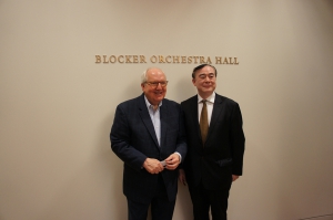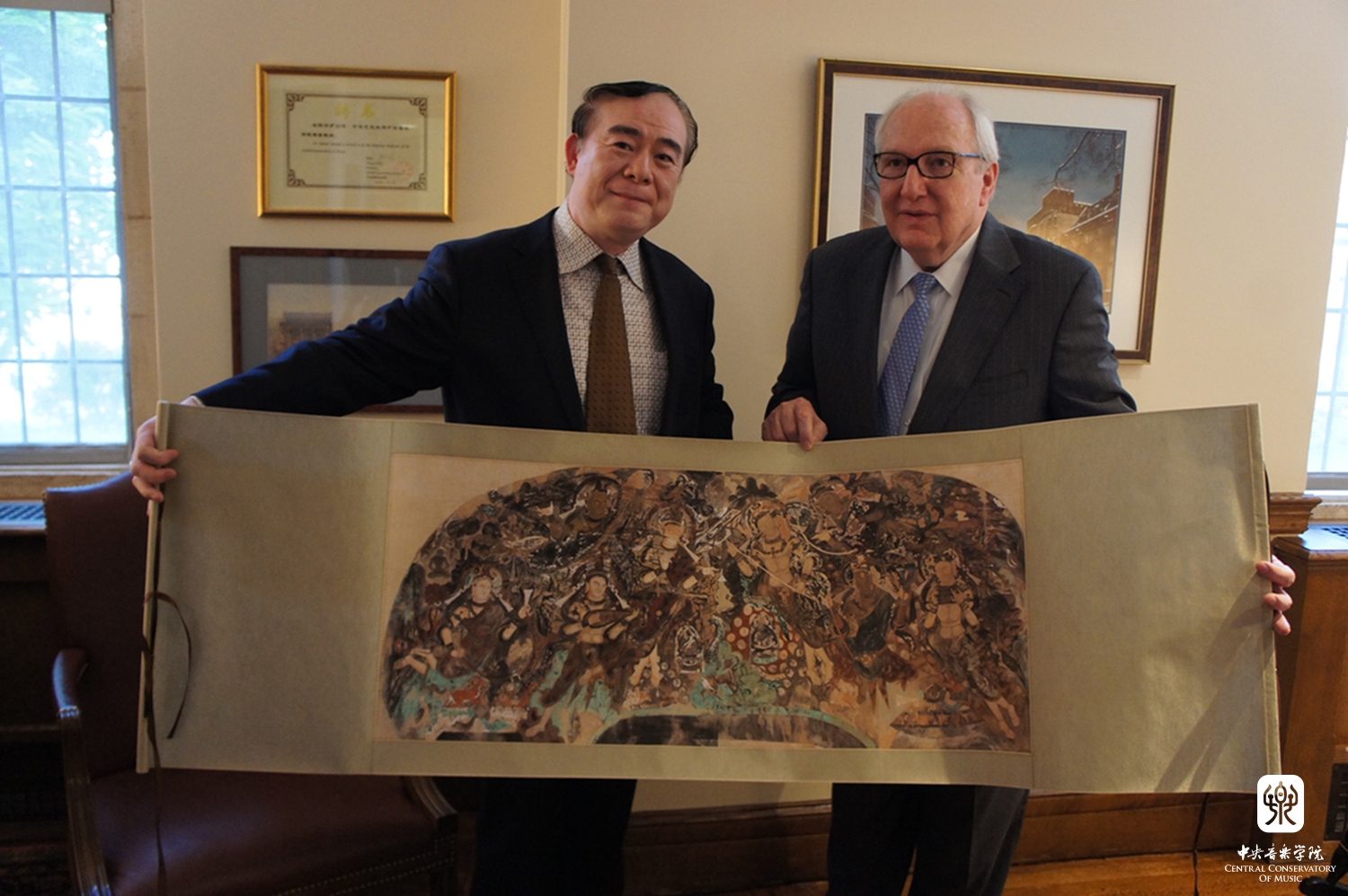 俞院长与布洛克院长合影,并向耶鲁大学音乐学院赠送礼物