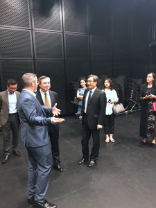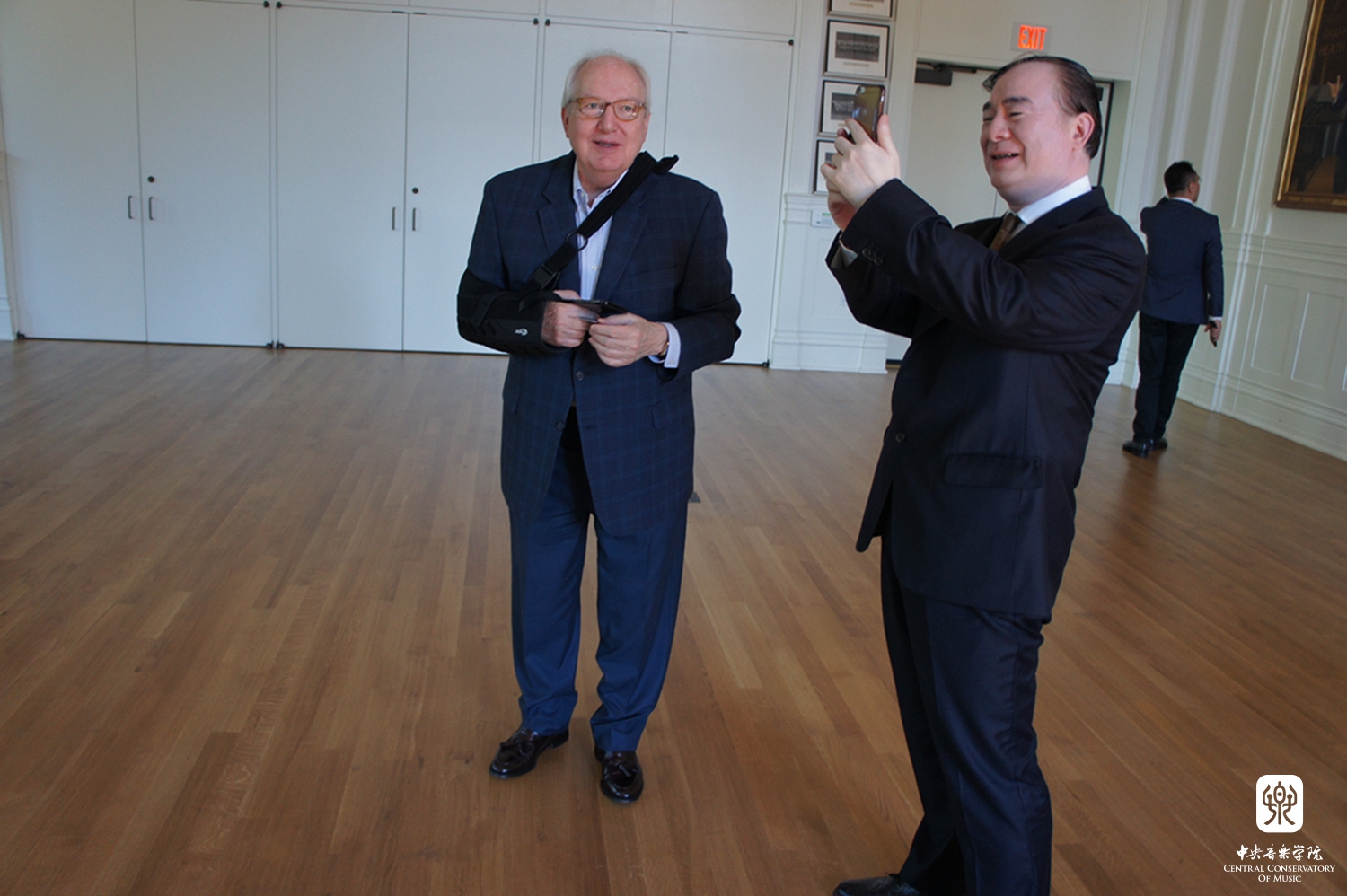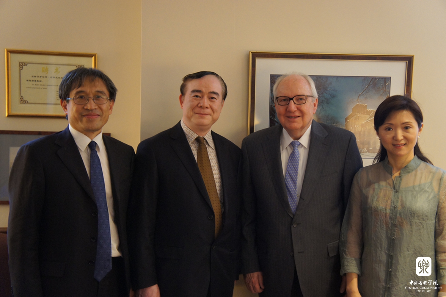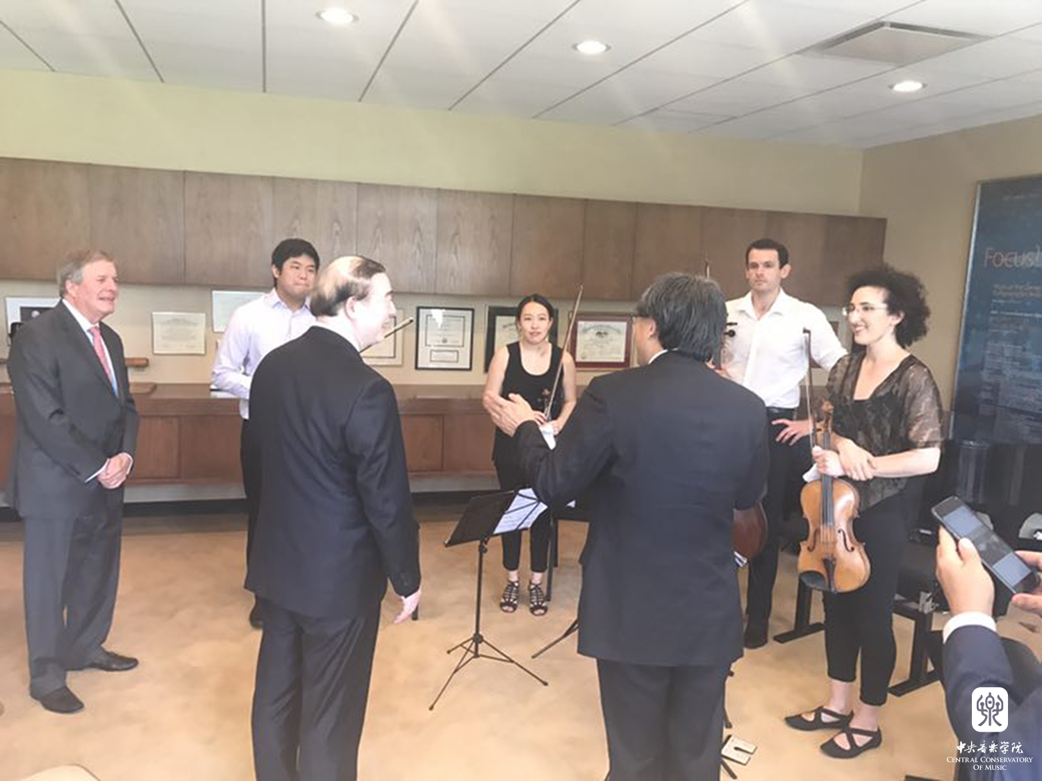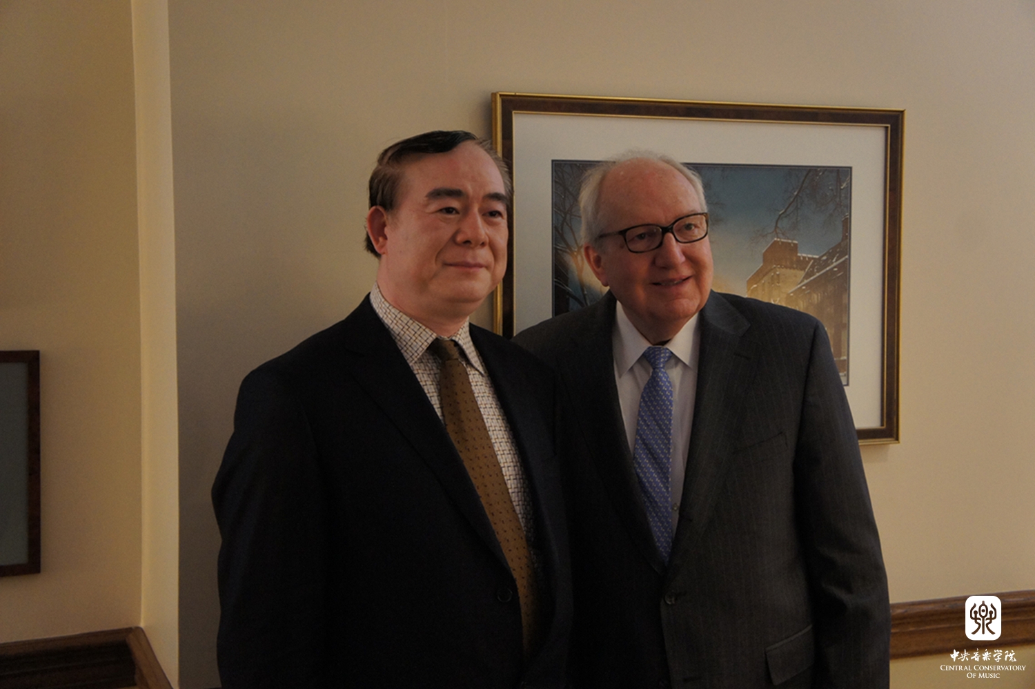在小型欢迎音乐会结束后,俞峰院长与茱莉亚学院波利希院长等高层领导举行了会谈。茱莉亚学院国际事务副院长莫大力(Dr. Christopher Mossey)先生、天津茱莉亚学院首席执行官亚历山大·布罗泽(Alexander Brose)先生、天津茱莉亚学院艺术总监何为(Wei He)先生,以及其他项目主要负责人参加了会见。俞峰院长向波利希院长介绍了我院近期办学和开展国际交流的情况,并将与该院开展合作的想法与院长进行了交谈。波利希院长特别介绍了最近天津茱莉亚学院800天倒计时活动和纽约茱莉亚学院筹备举行中国当代音乐周的情况,希望与星空彩票ios版中心版保持合作,继续支持该院的活动。星空彩票ios版中心版与茱莉亚学院有着长久和良好的合作关系,波利希院长多次率团访问星空彩票ios版中心版。此次俞峰院长访问茱莉亚学院是星空彩票ios版中心版首次官方对该院的正式访问,星空彩票ios版中心版希望不断加强与茱莉亚学院为代表的国际一流音乐院校开展实质性的合作,并就具体项目达成共识。