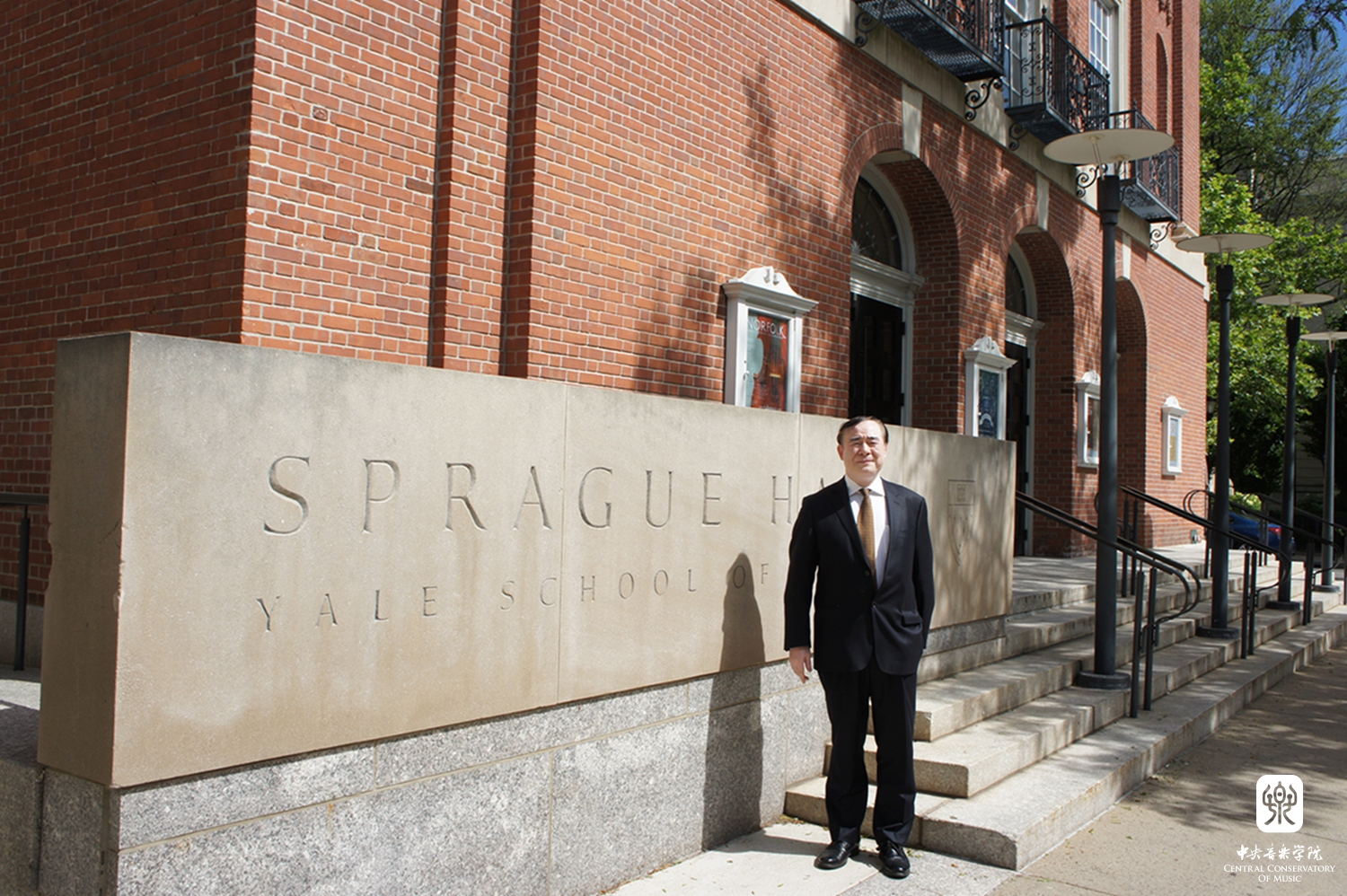 | 俞院长在耶鲁大学音乐厅前留影 |