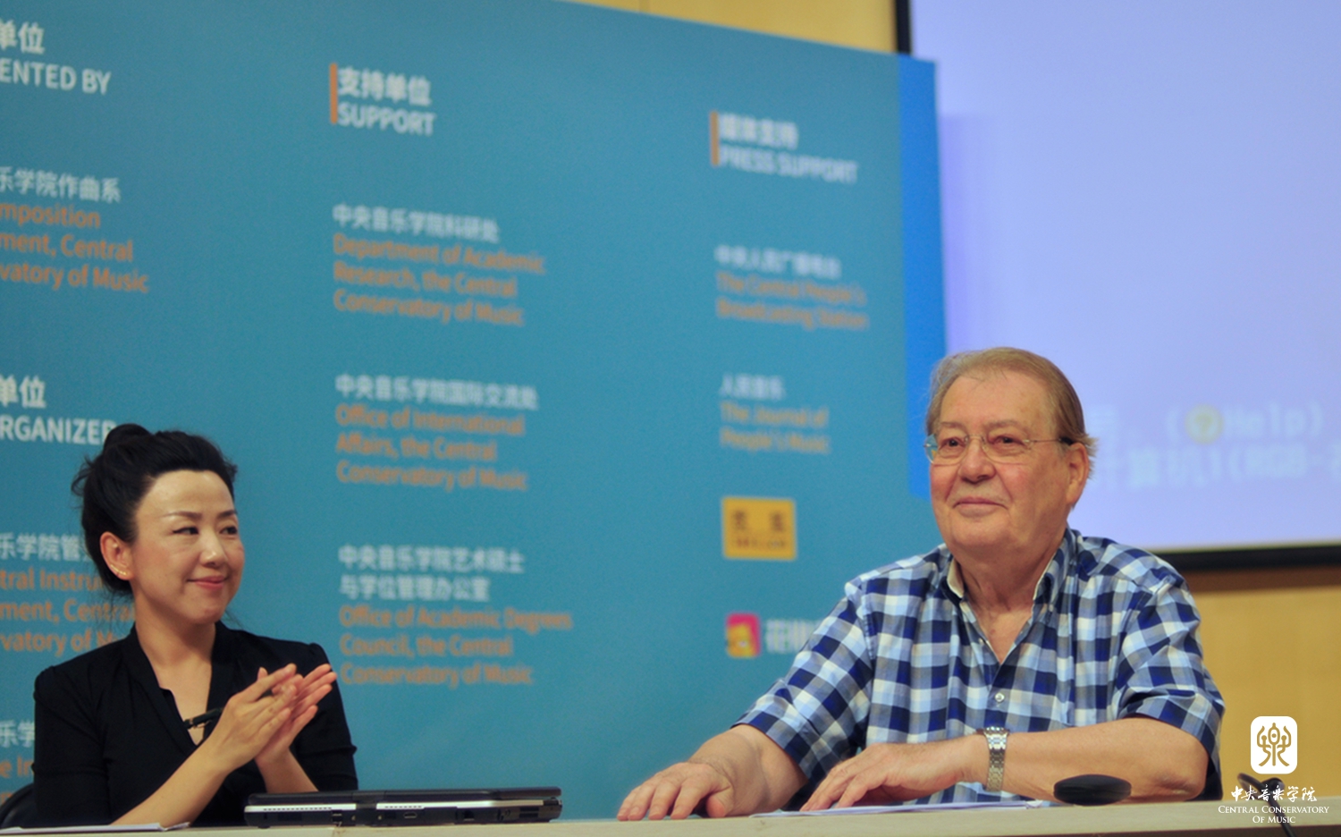 奥地利指挥家彼得·布维克教授与翻译张楠女士 |
