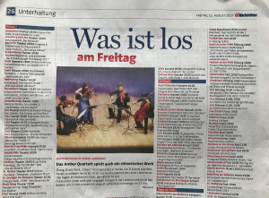本场演出获得了奥地利媒体的高度关注,包括奥地利知名乐评人C.Crubauer在内的多位业内人士到场。琥珀四重奏以高规格的演奏以及富有光彩的音乐,征服了奥地利观众并得到了乐评人的高度评价,音乐会获得巨大成功。音乐会后,琥珀四重奏受邀于2018年、2019年再赴奥地利举办音乐会。