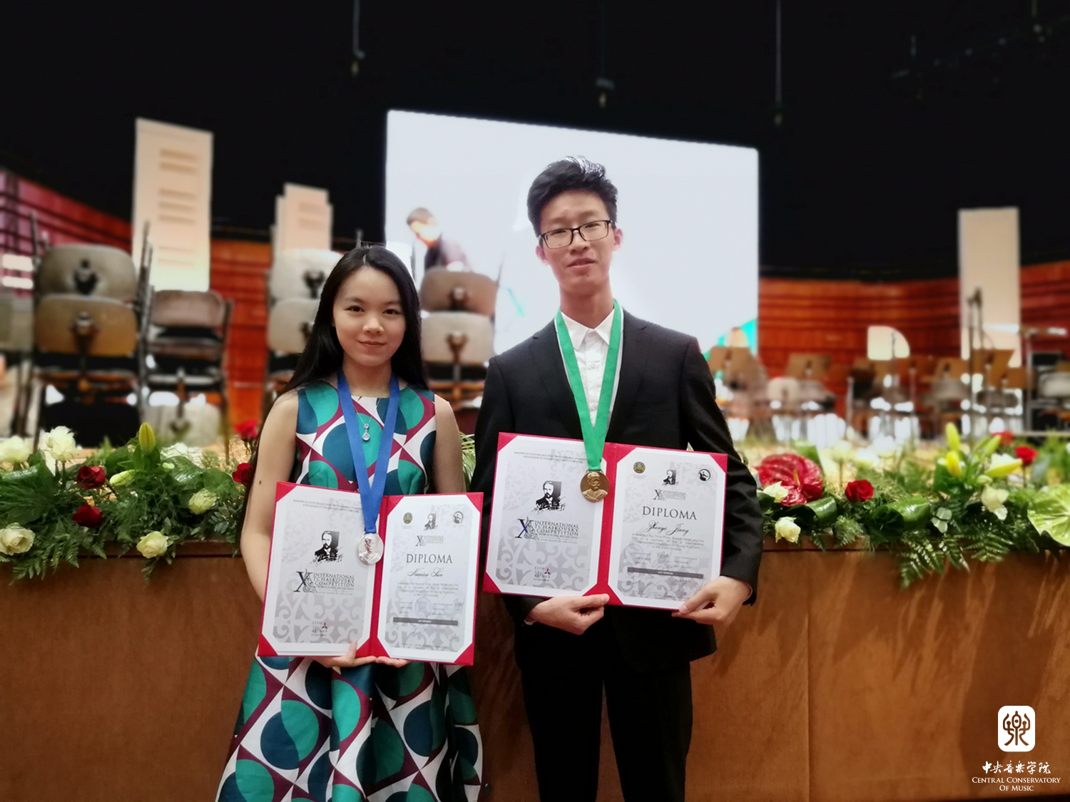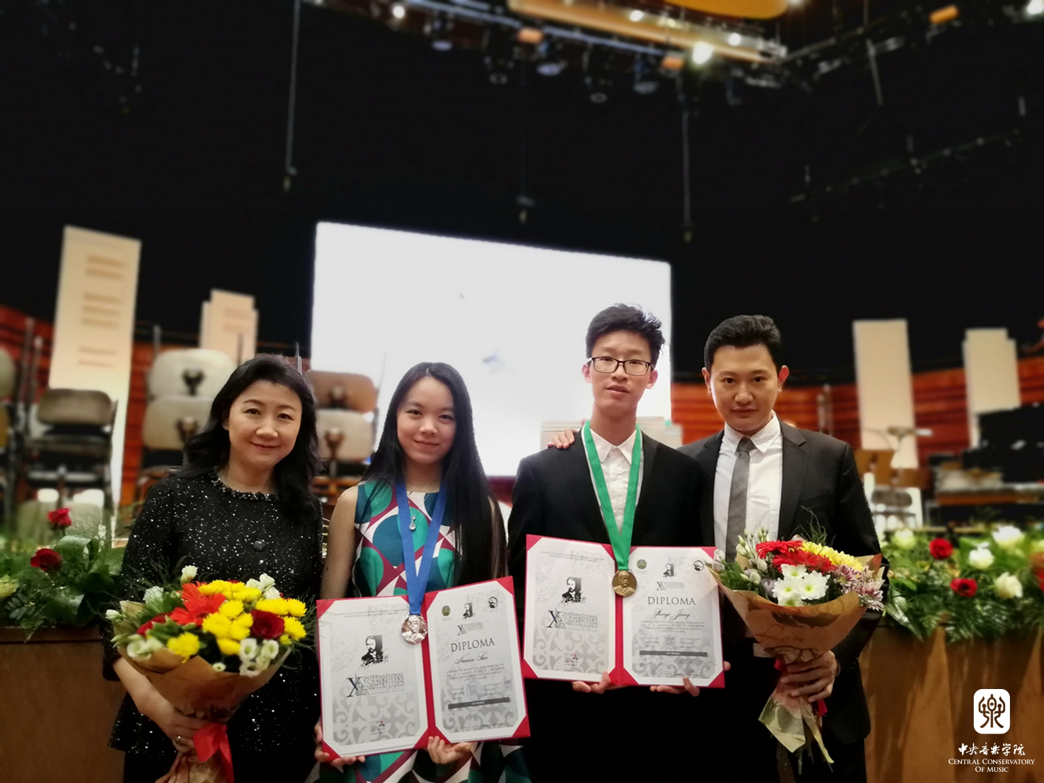 在刚刚结束的第十届柴科夫斯基青少年国际音乐比赛中,我校附中高一年级学生娜米萨·孙荣获大提琴组比赛亚军,初三小提琴学生江枕毅荣获小提琴组比赛季军。这是近年来我校附中学生在国际重大赛事中获得的最高荣誉。在此,向江枕毅同学及辅导教师赵薇教授、陈曦老师,娜米萨·孙同学及辅导教师宋涛教授、朱牧副教授表示祝贺。