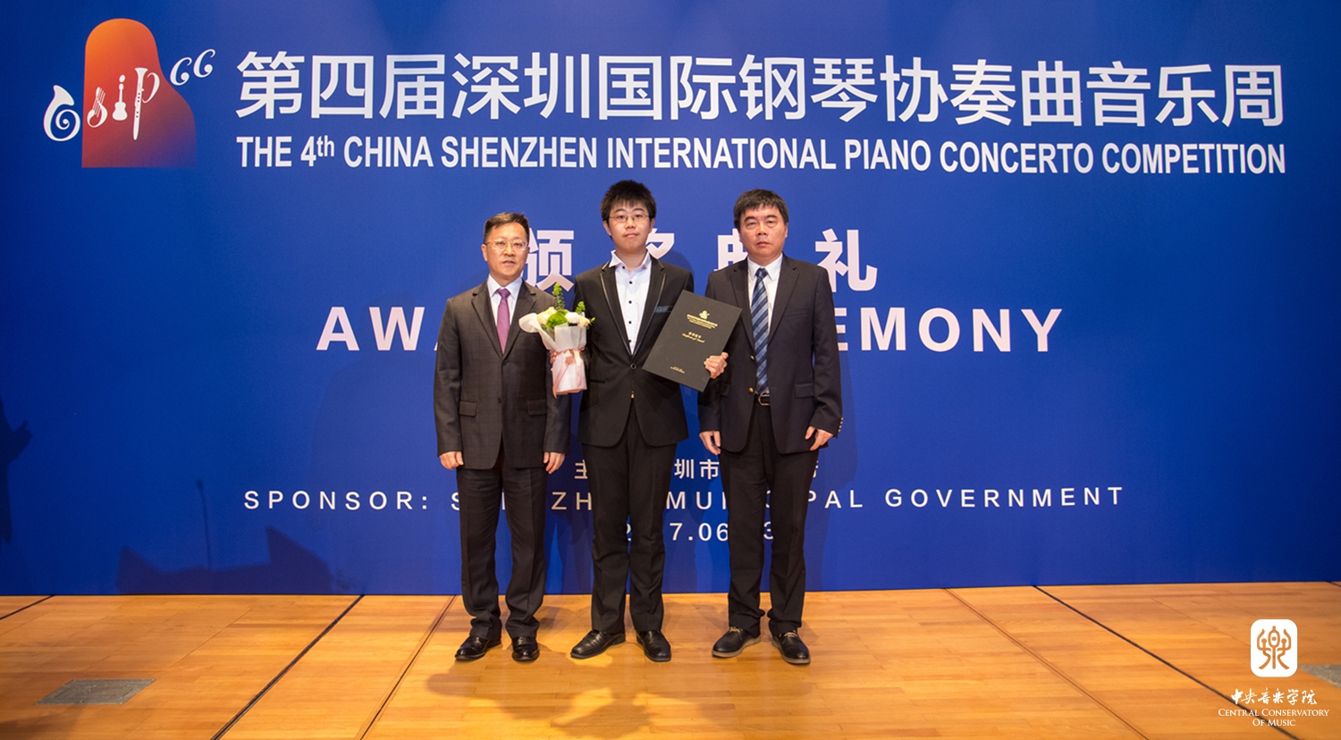 2017年第四届深圳国际钢琴协奏曲音乐周于6月23号落下帷幕。经过三轮四首协奏曲的激烈比拼,星空彩票ios版中心版附中白岩峰同学(指导教师:张晋教授)从全世界各路强手中脱颖而出,在决赛中以公认为艰深博大的巨作《勃拉姆斯第二钢琴协奏曲》征服了听众和评委,获得专家一致好评,摘得大赛第一名桂冠!他还被深圳交响乐团聘为客座钢琴演奏家,将在2018-19音乐季和深圳交响乐团展开一系列演出合作。另外,白岩峰还获得意大利"天才钢琴艺术节"的巡演邀约,将在意大利三座城市举办独奏会,并和交响乐团合作演出。