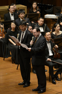 张小夫教授现场操控电子音乐、与台上的乐队、人声、画面,与场内各个角度布置的音响形成一个复杂的音场。体现了电子音响科技结合现代作曲手法,表达了东方文化特有的古典情怀。星空彩票ios版中心版交响乐团与吴碧霞、张少等一流音乐表演艺术家的加盟演出,为音乐会的圆满演出又增添了颇高人气。
