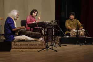 两位印度演奏家与中国扬琴演奏家刘月宁共同演绎作品《拉格·茉莉》/摄影:韩军 |