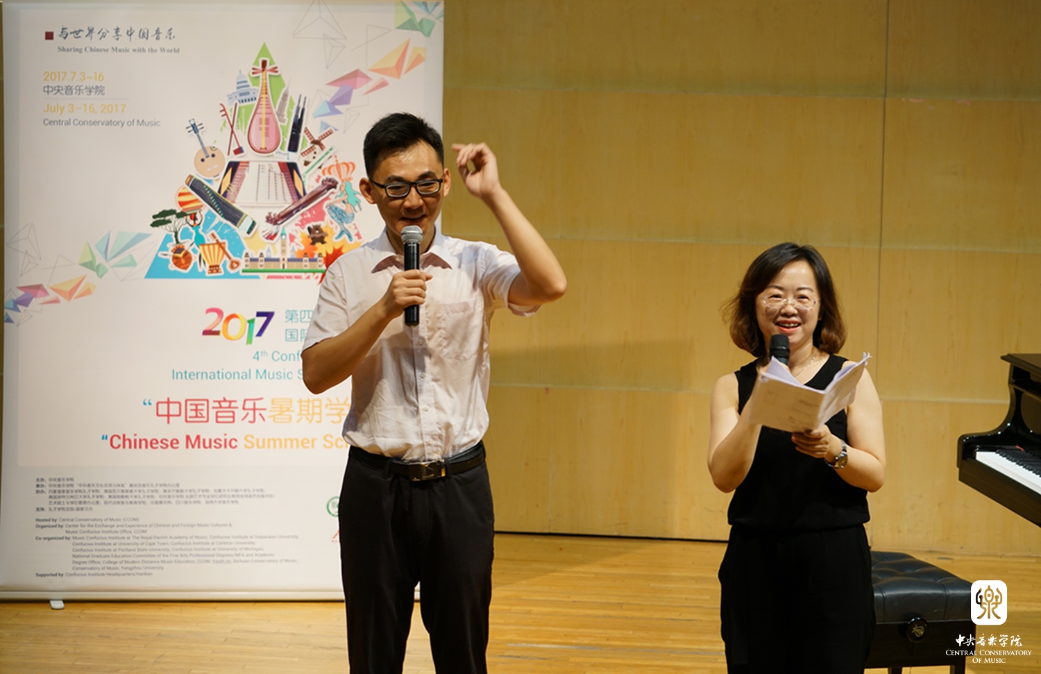 7月3日晚,由孔子学院总部/国家汉办及社会各界支持,星空彩票ios版中心版主办、"中外音乐文化交流与体验"基地及音乐孔子学院办公室承办的国际音乐教育交流文化品牌项目——第四届孔子学院国际音乐夏令营"中国音乐暑期学院"在星空彩票ios版中心版音乐厅拉开帷幕。