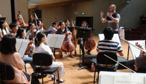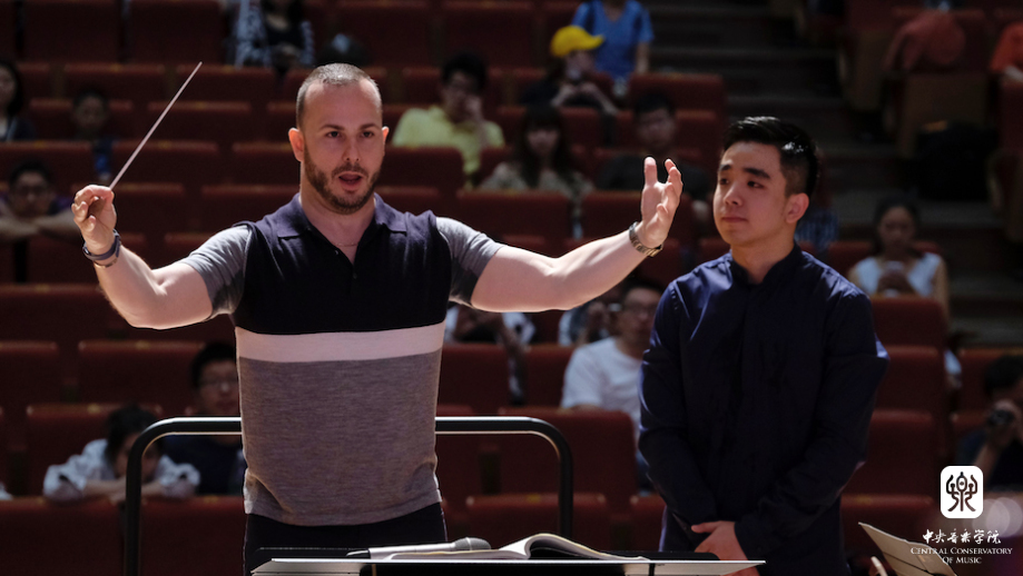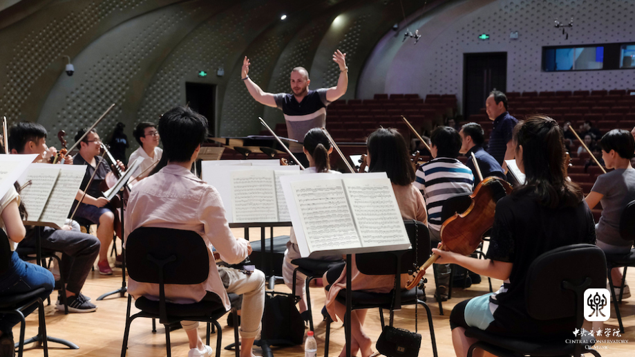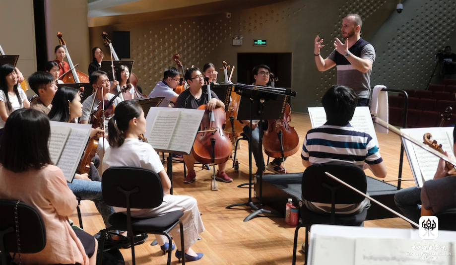 在下午的乐队指导课上,雅尼克先生不辞辛劳亲自登台执棒,指挥新近成立的星空彩票ios版中心版交响乐团排练了门德尔松《第四交响曲》。雅尼克大师生动活泼、妙趣横生的精彩排练和指导赢得了师生们经久不息的掌声。他对乐队的声音非常喜欢和满意,也对我院的教学水平和同学们所表现出的才能赞不绝口,祝愿今后有更多的合作。此后,乐队还在费城交响乐团助理指挥廖国敏先生指挥下排练了莫扎特《第36号交响曲》。乐队排练课由杨戈芳教授担任翻译。