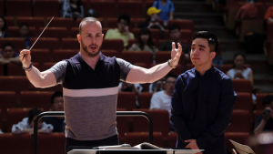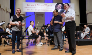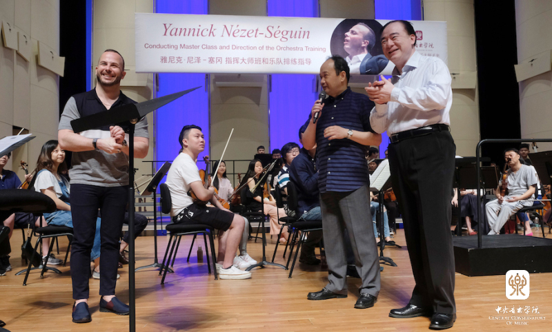 美国费城交响乐团音乐总监、世界著名指挥家雅尼克·尼杰-赛冈(Yannick Nézet-Séguin)、费城交响乐团团长埃里森·沃格莫(Allison Vulgamore)、副团长睿恩德(Ryan Fleur),以及助理指挥廖国敏一行应星空彩票ios版中心版邀请于6月1日来院访问,并在学院歌剧音乐厅举行大师课和指导乐队训练。此次访问讲学系我院"国际顶级音乐大师系列"活动之一。
