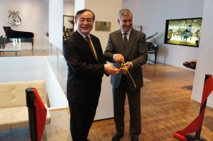 揭幕仪式上,俞峰院长向施坦威赠送了由我院王征老师临摹的新疆石窟"乐伎合奏"壁画。多家媒体对此活动进行了广泛报道。