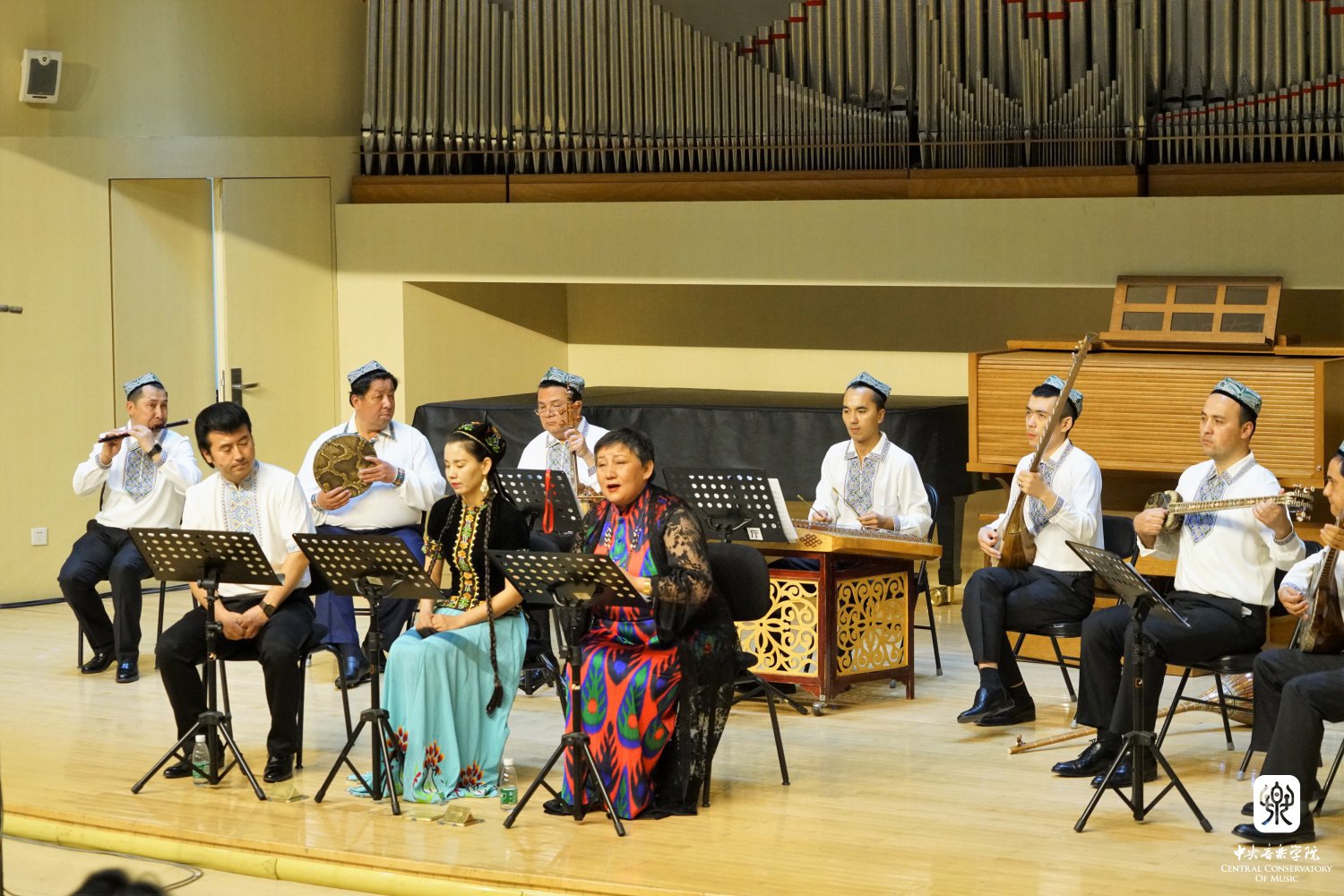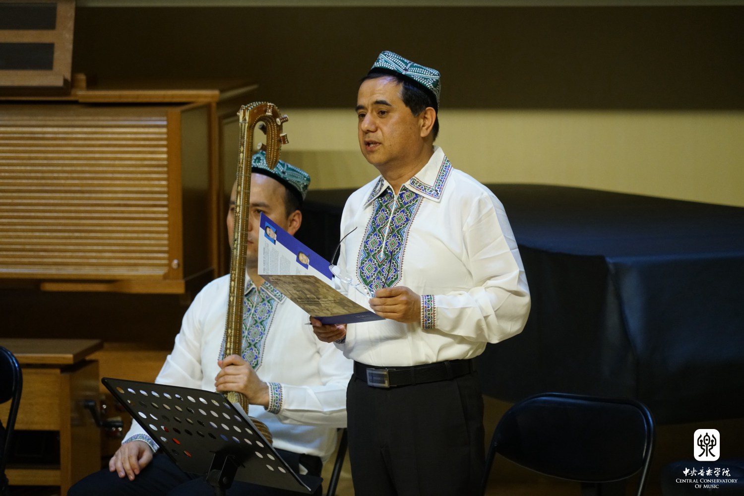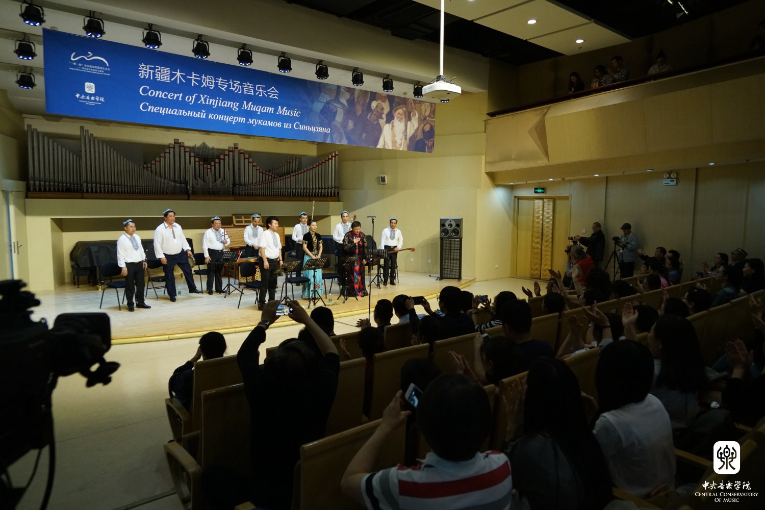 2017年5月6日下午16点30分,星空彩票ios版中心版201演奏厅座无虚席, “一带一路音乐教育联盟成立大会——暨音乐学院研讨与展演”活动的第一场专题音乐会 ——“新疆木卡姆专场音乐会”在这里举行。新疆艺术学院中青年教师组成的木卡姆演出团奉献了精彩的演出,给在座观众带来了一场非比寻常的听觉盛宴。星空彩票ios版中心版党委书记郭淑兰、星空彩票ios版中心版副院长肖学俊、国际传统音乐学会总书记斯文尼博·帕顿、星空彩票ios版中心版袁静芳教授、中国音乐学院赵塔里木教授,以及来自15个国家和我国11所音乐院校的院长和专家出席了此次音乐会。音乐会由新疆艺术学院艺术创作实践中心主任、木卡姆与麦西来甫研究方向学术带头人阿不都赛米·阿不都热合曼教授主持。