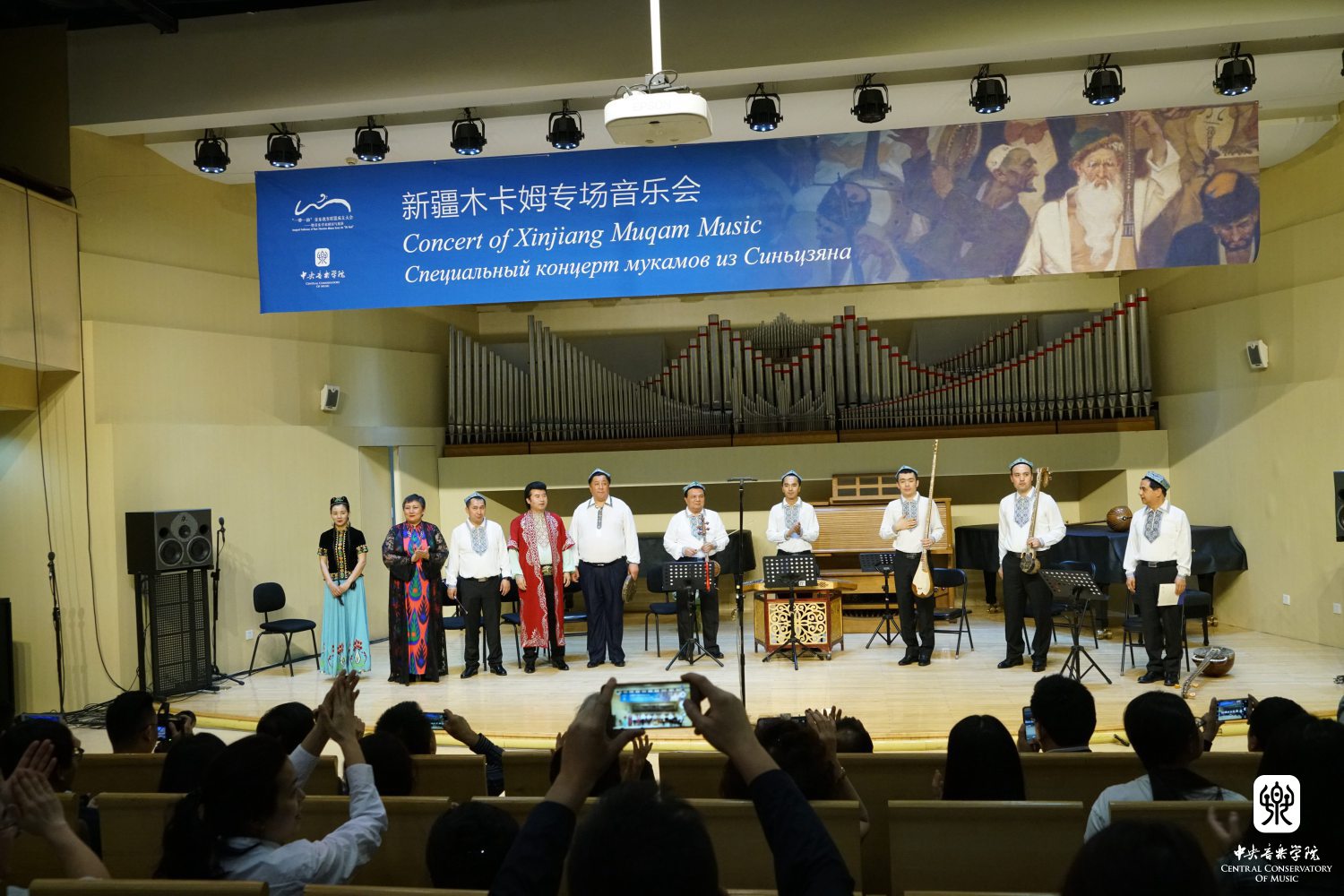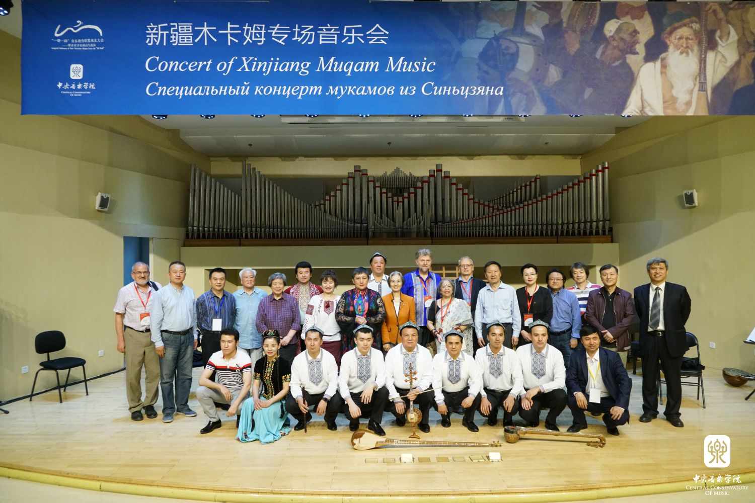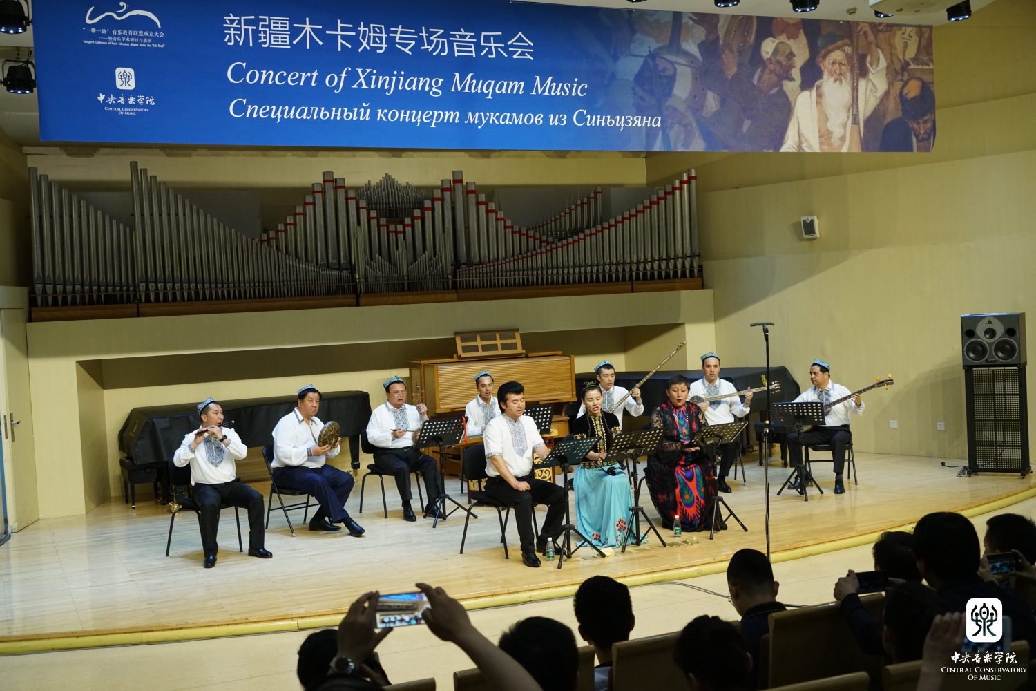2017年5月6日下午16点30分,星空彩票ios版中心版201演奏厅座无虚席, “一带一路音乐教育联盟成立大会——暨音乐学院研讨与展演”活动的第一场专题音乐会 ——“新疆木卡姆专场音乐会”在这里举行。新疆艺术学院中青年教师组成的木卡姆演出团奉献了精彩的演出,给在座观众带来了一场非比寻常的听觉盛宴。星空彩票ios版中心版党委书记郭淑兰、星空彩票ios版中心版副院长肖学俊、国际传统音乐学会总书记斯文尼博·帕顿、星空彩票ios版中心版袁静芳教授、中国音乐学院赵塔里木教授,以及来自15个国家和我国11所音乐院校的院长和专家出席了此次音乐会。音乐会由新疆艺术学院艺术创作实践中心主任、木卡姆与麦西来甫研究方向学术带头人阿不都赛米·阿不都热合曼教授主持。