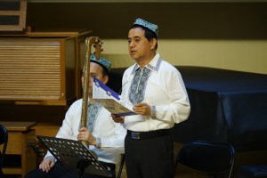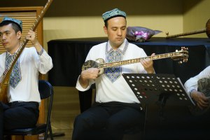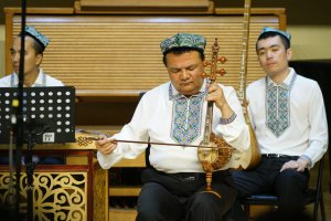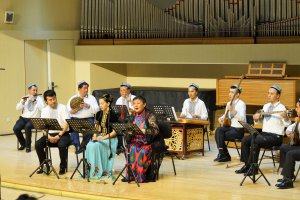 中国新疆维吾尔木卡姆艺术被人们赞誉为“中华瑰宝”、 “丝路明珠”,是东、西方乐舞文化交流的结晶。本场音乐会首先呈现给听众的是时而热情、时而而悠扬、时而深沉的《潘吉尕木卡姆片段》,由新疆艺术学院中青年教师阿不都赛米·阿不都热合曼、阿不都克里木·吾斯曼、阿依先木古丽·木合麦提等10位教师表演。《潘吉尕木卡姆》是新疆维吾尔族《十二木卡姆》中的第五套, 该套的主要特点是音高的不稳定和游移性,《潘吉尕木卡姆片段》浓缩了此套木卡姆的精华,整整四十分钟的精彩演奏,伴随着一波又一波律动的热浪,不断地将观众的情绪推向了高潮,使听众完全被新疆艺术家充满激情的表演而震撼。